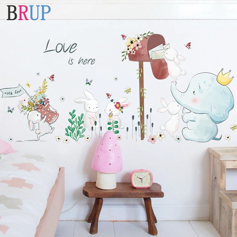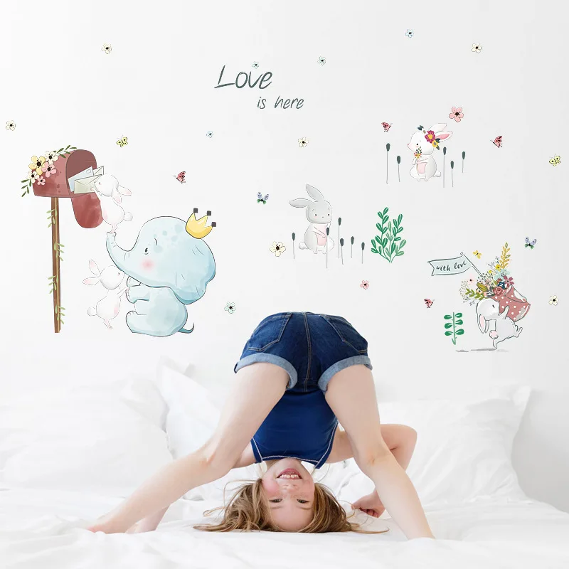 Мультяшные милые животные наклейки на стену для детской комнаты кролики слон приемник электронная почта декоративные винилы для стен декор для комнаты