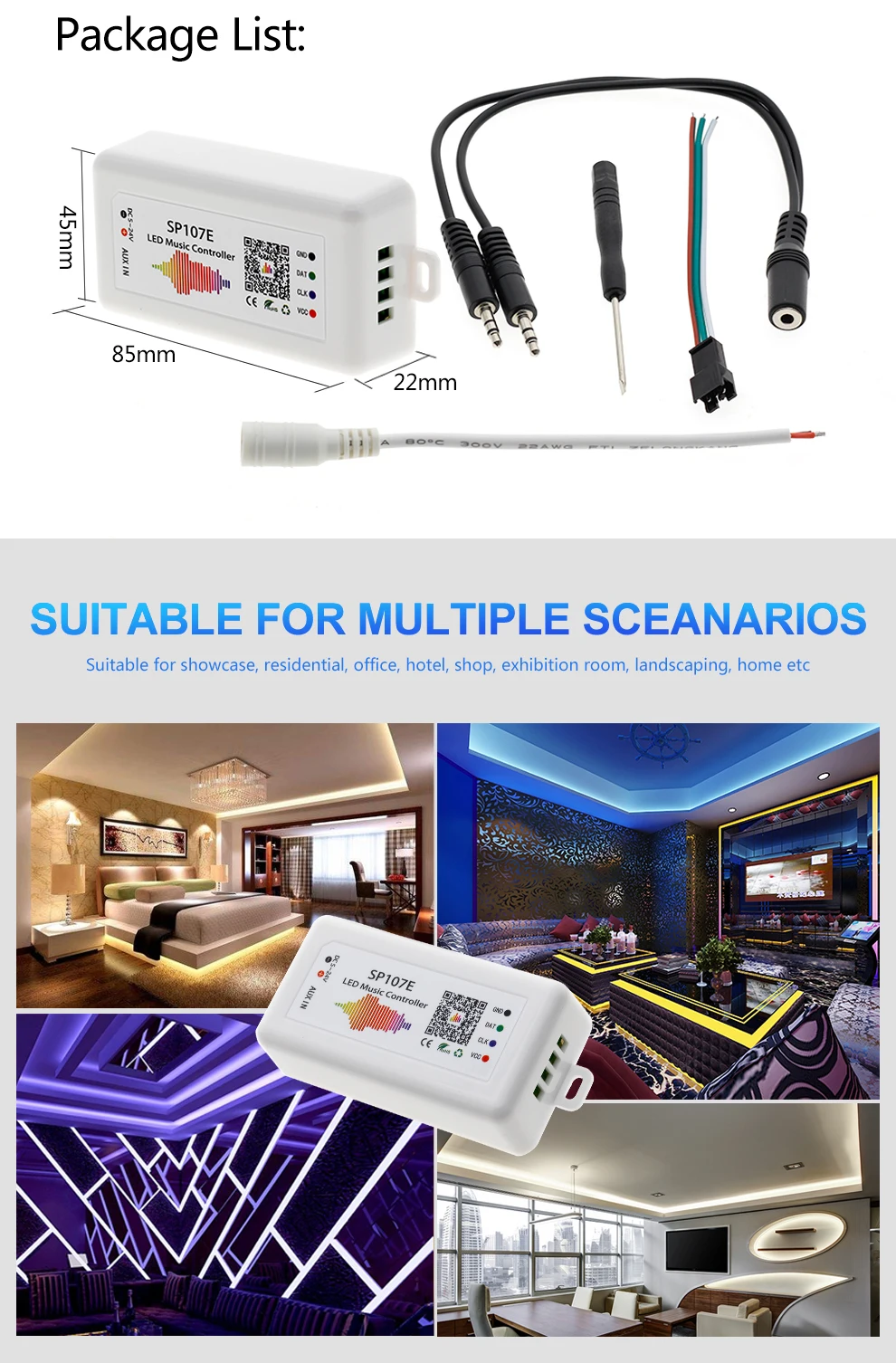 Контроллер музыки SP107E Bluetooth светодиодный, полноцветный пиксельный контроллер IC SPI с помощью приложения для смартфона, для светодиодной ленты WS2812B WS2813 SK6812