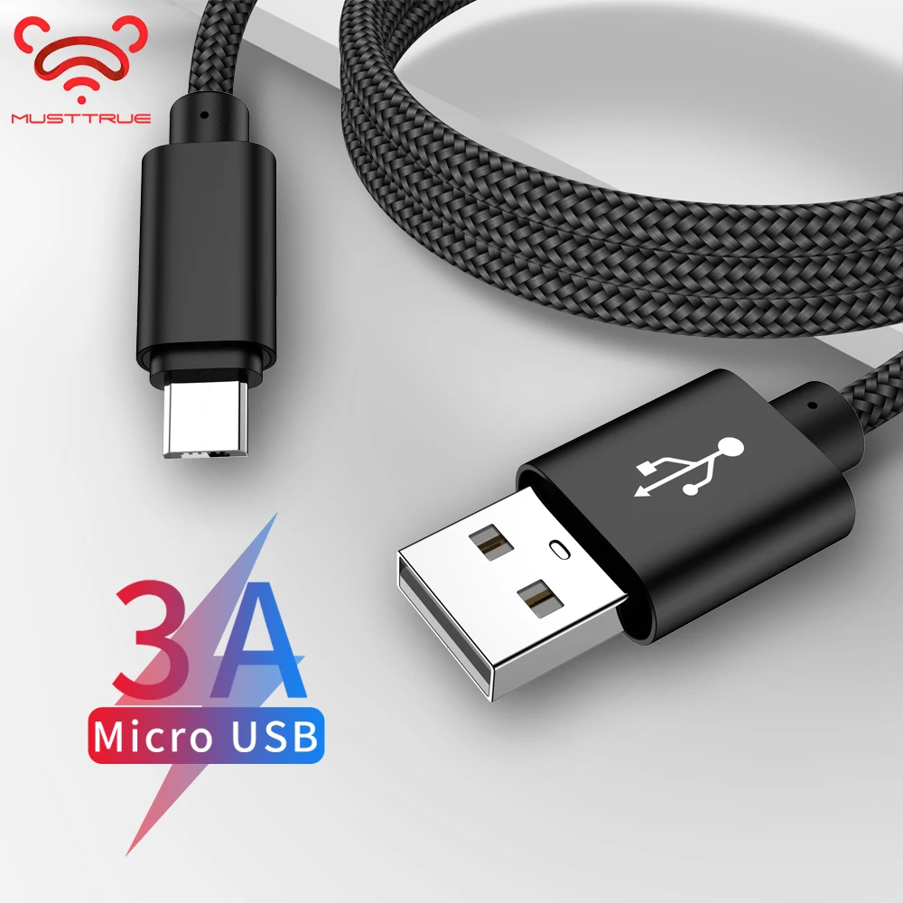 Micro USB кабель MUSTTRUE 3A для Xiaomi Redmi Note 4 Samsung S7 Huawei P7, кабель для быстрой зарядки, USB кабель для планшета, USB кабель для мобильного телефона