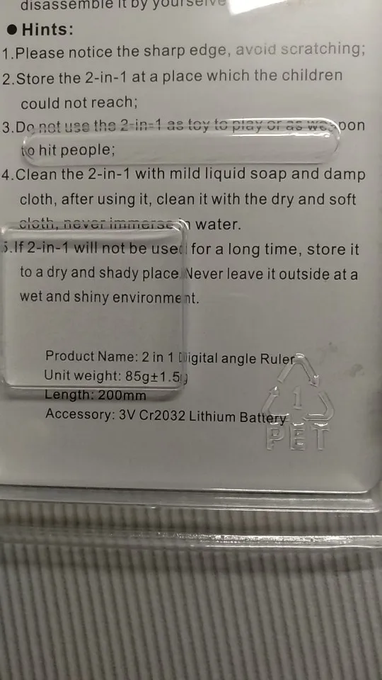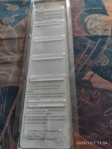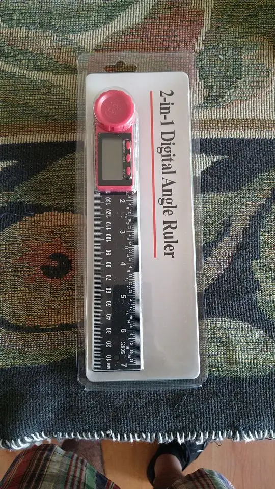 Покупал 11.11 на распродаже. Доставка получилась больше месяца. Сам угломер что ни на есть самый дешманский, линейки пластиковые, деления линеек выполнены краской трафаретной печатью, но они в общем-то и не очень нужны. Но за блистер и инструкцию накидывать почти 100 рублей - это перебор! В описании заявлено, что источника питания нет. Но там и угломер голый без упаковки... В инструкции чётко прописана комплектация: угломер и аксессуар ( литиевая батарейка 3В CR2032 ). В блистерной упаковке даже предусмотрено место для элемента питания, но и здесь хитрожопые китайцы умудряются нас на@#ать. Звёзды снимать не буду, сам виноват... Точность ни о чём. Прямые углы на мебели перемерял во всей квартире... +/- 1.5 градуса!!! Вывод - детям в школе норм, для точных работ не годится, фуфлометр.