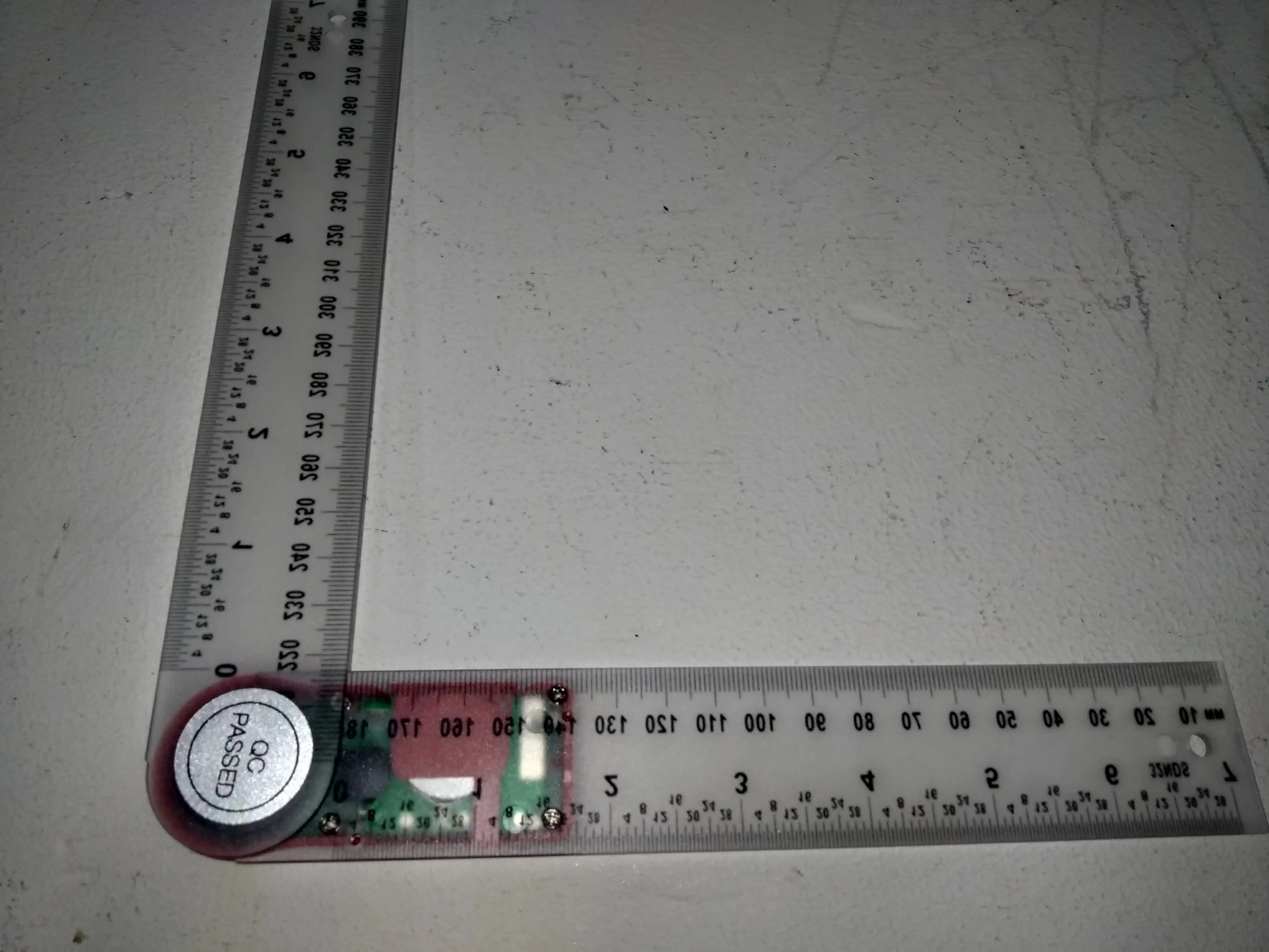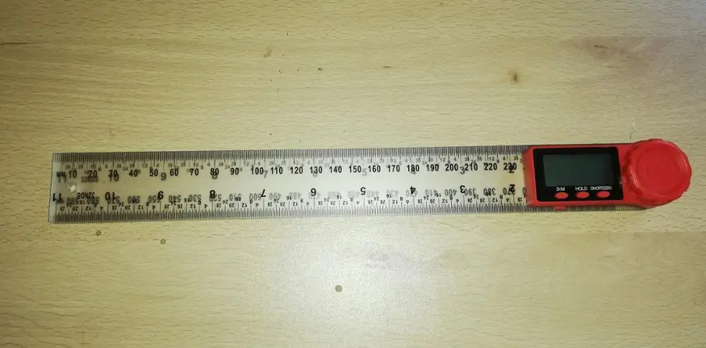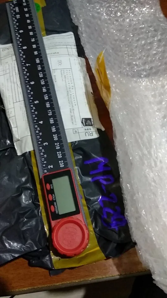 Привет друзья. Товар пришел в Беларусь Гродно за 65 дней. На вид очень качественный продукт. Очень нежный инструмент. 90,00 градусов замучился выставлять. Нежный но точный. Линейки пластик. Если пользоваться маркером они быстро потеряют свой первый вид. Батареек в комплекте не было. Я купил заранее. Вставлять нужно плоской частью вниз. Продавца и товар рекомендую.