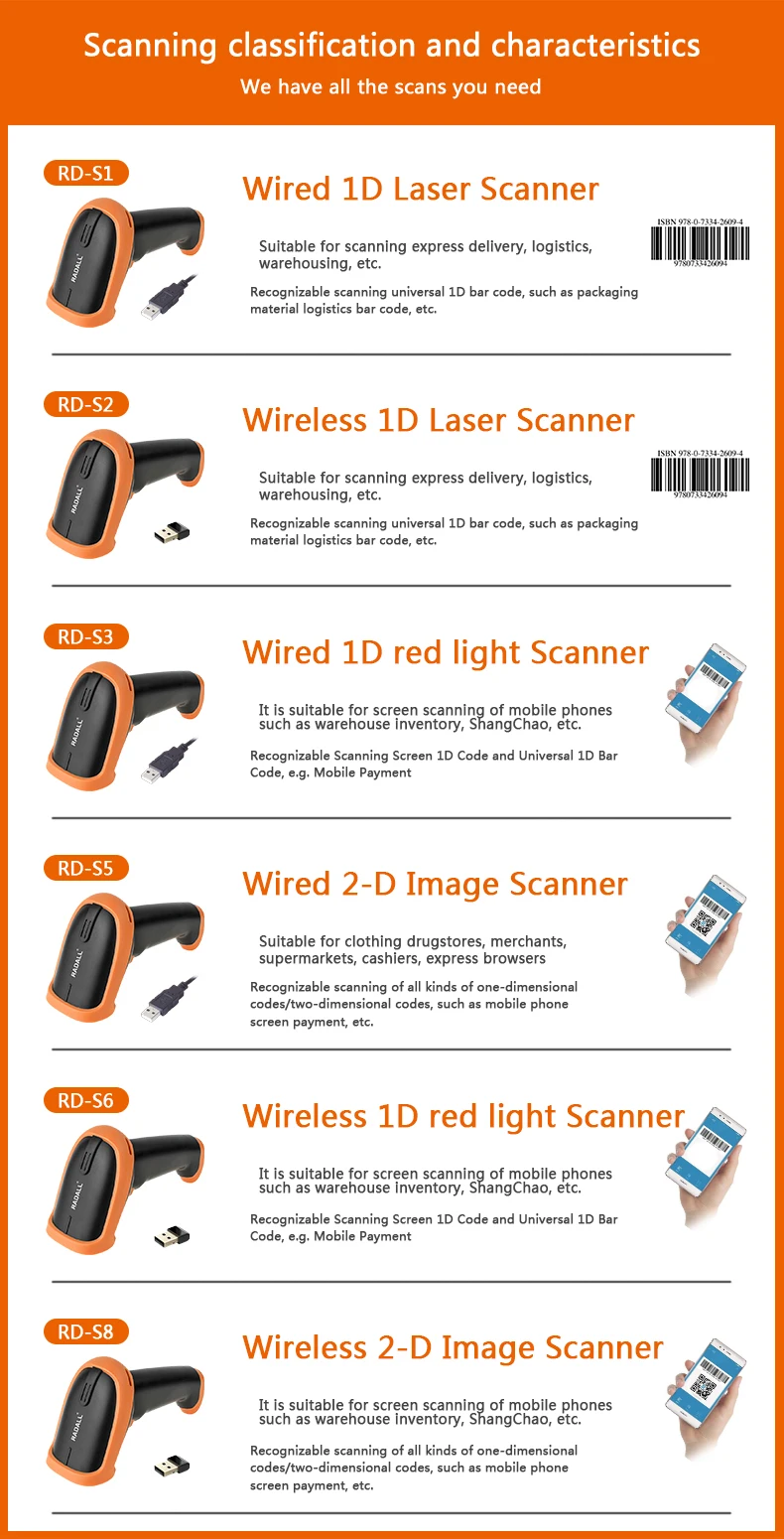 Беспроводной сканер штрих-кода RADALL проводной сканер штрих-кода 1D2D считыватель штрих-кодов QR для инвентаризации POS терминал беспроводной сканер