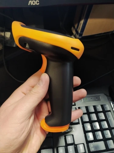 Отличный сканер, беспроводной, есть возможность сканировать в память. Инструкция просто супер мегаполезная. Настраивается сканнер через сканирование определенных штрихкодов в инструкции.
