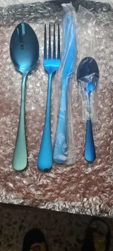 Набор столовых приборов вилки, ножи, ложки, синий набор столовых приборов из нержавеющей стали