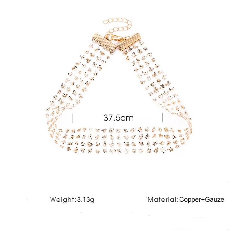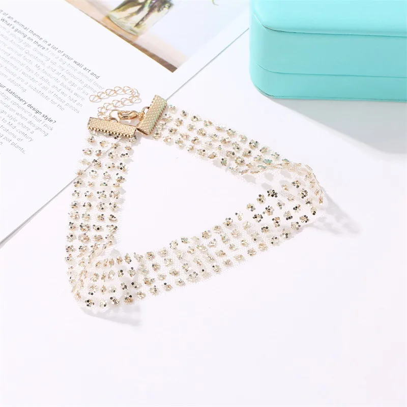 Ожерелье-чокер женское, широкое металлическое, с блестками, A005