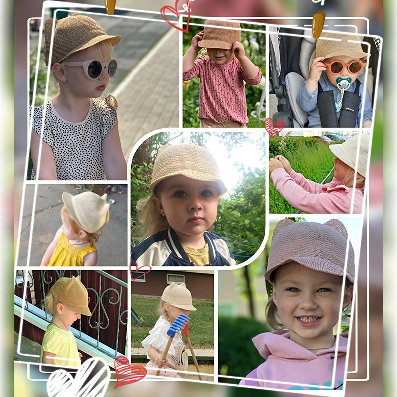 Симпатичная Детская шляпа с ушками, летняя соломенная сетка, шляпа для маленьких девочек и мальчиков, Snapback, детская бейсбольная кепка, пляжная шляпа от солнца