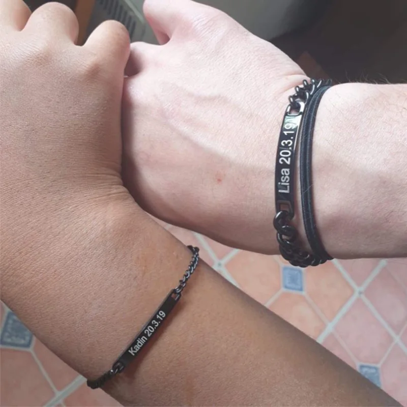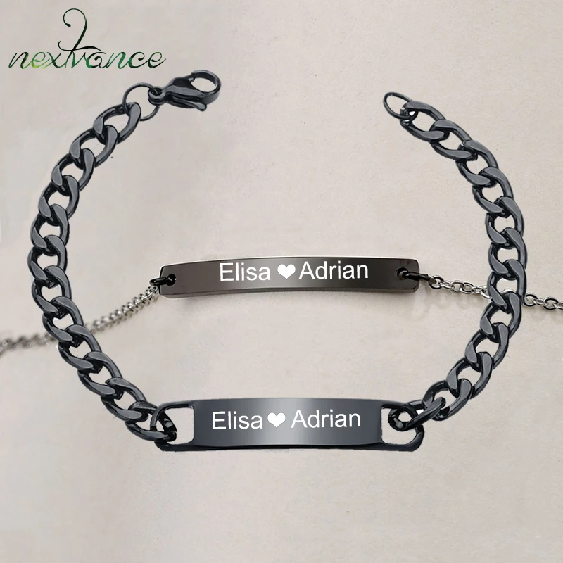 Nextvance индивидуальные гравировальные таблички пара браслет из нержавеющей стали цепь Id тег Браслеты для влюбленных День святого Валентина