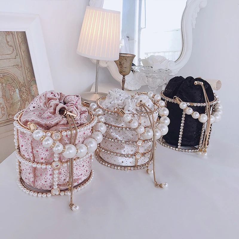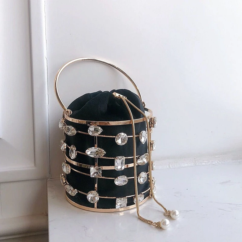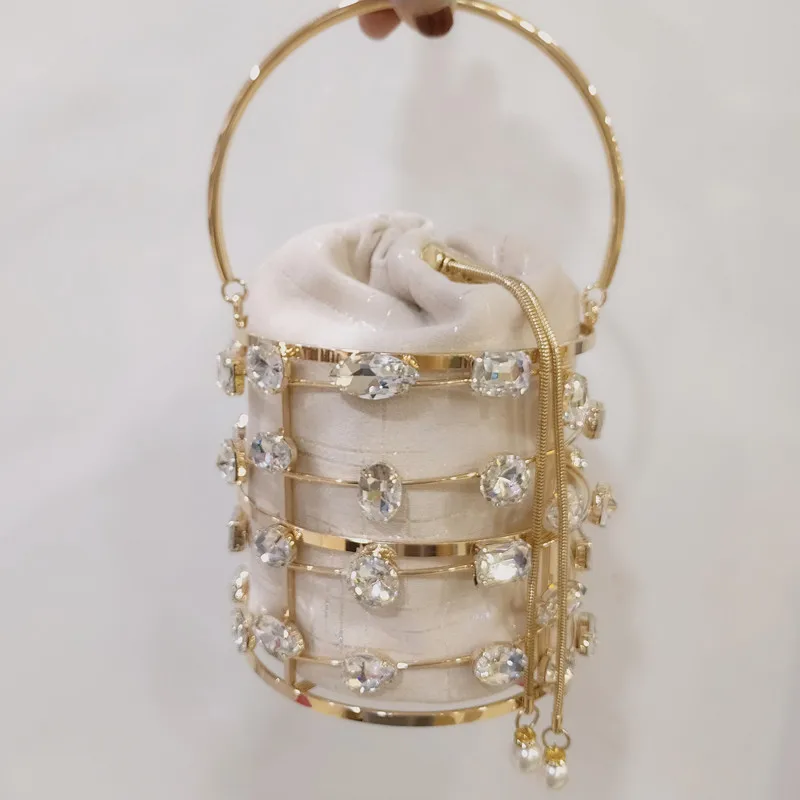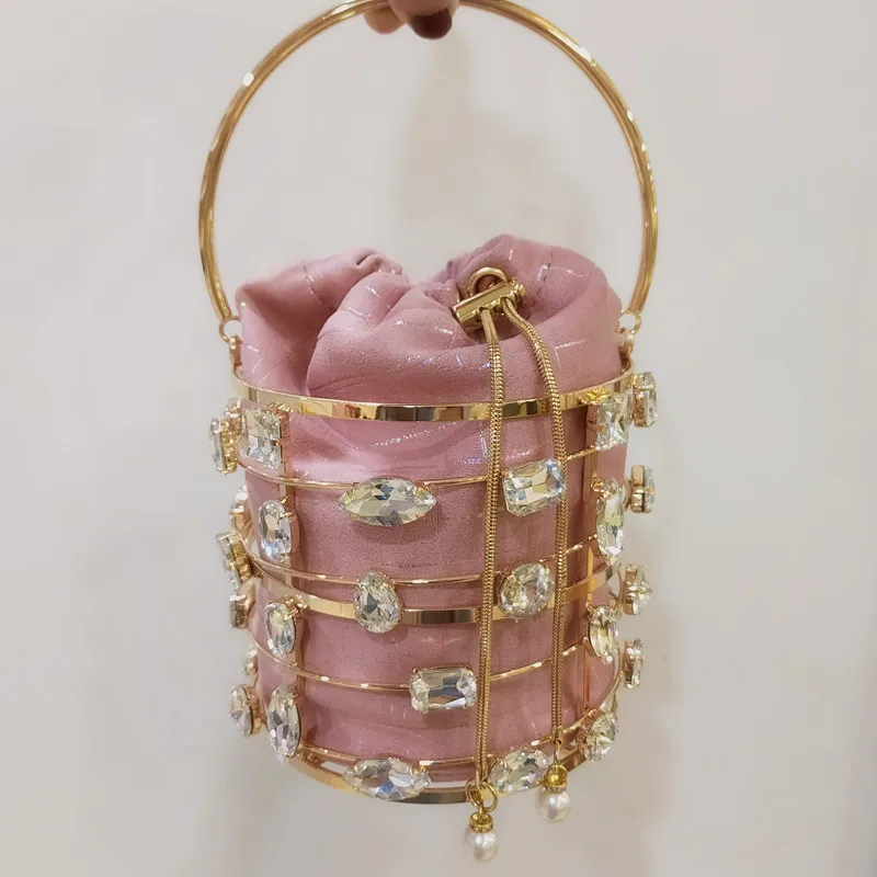 Роскошный алмаз, металлическая оправа, ведро жемчуг ручка женские вечерние сумочки клатки сумки и сумки для женщин, дизайнерские перфорированные сумке; Свадебная обувь сумка через плечо на цепочке