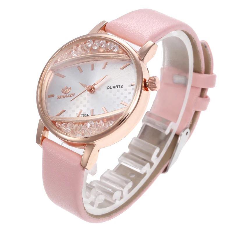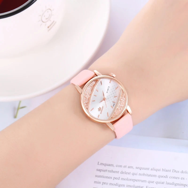 Розовые женские часы со стразами, роскошные кожаные Брендовые женские часы, модные женские часы под платье, бесплатная доставка