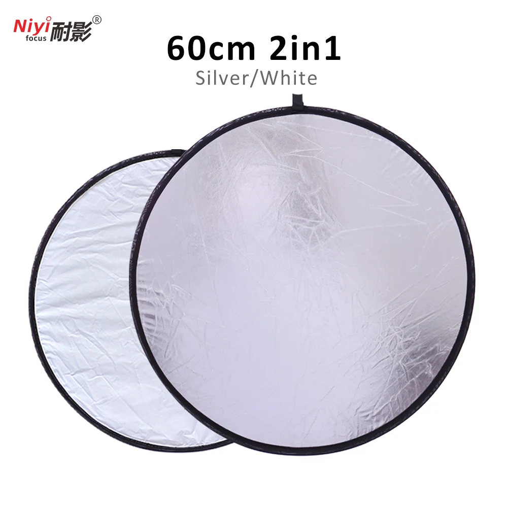 Складной портативный дисковый светильник 2 в 1, отражатель для фотостудии, белый, серебристый, 24 дюйма60 см