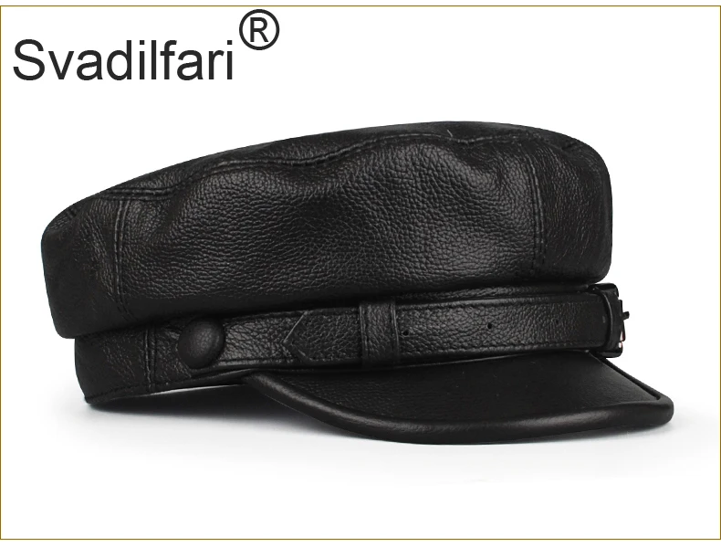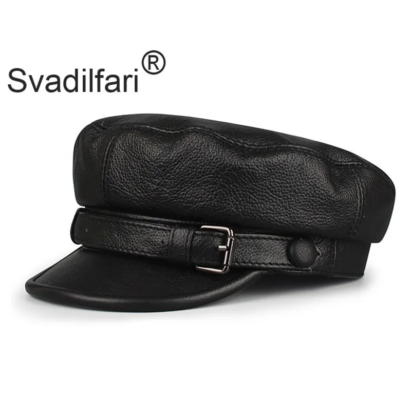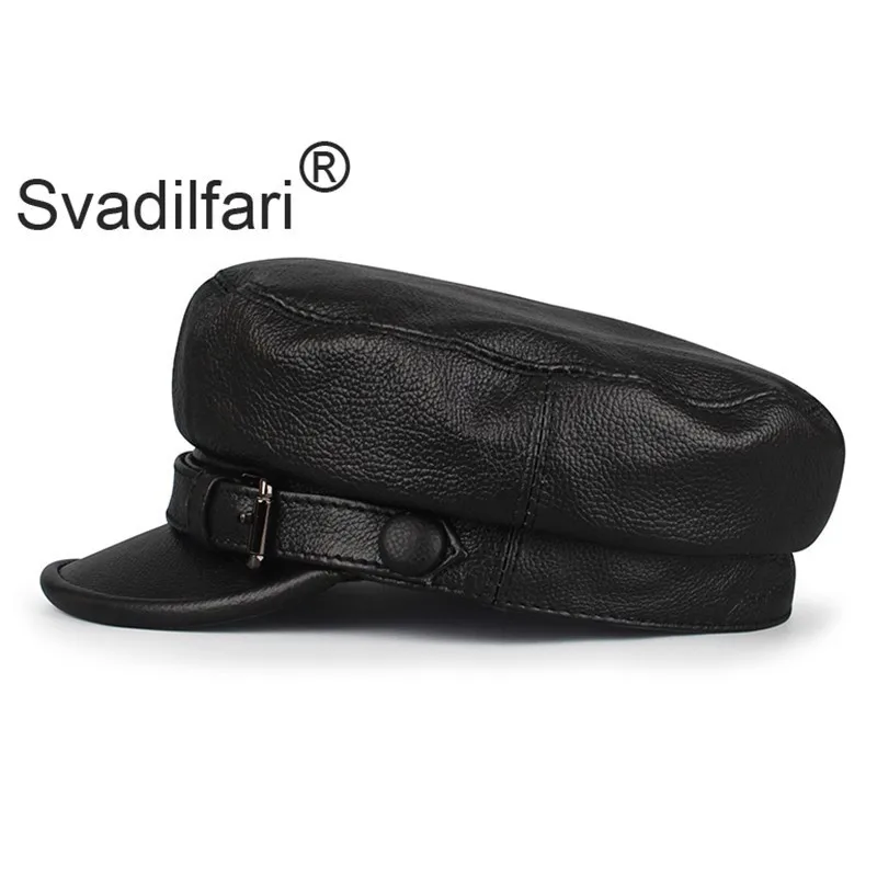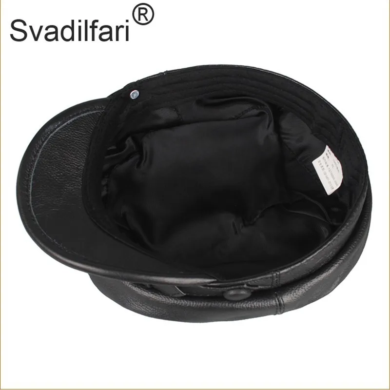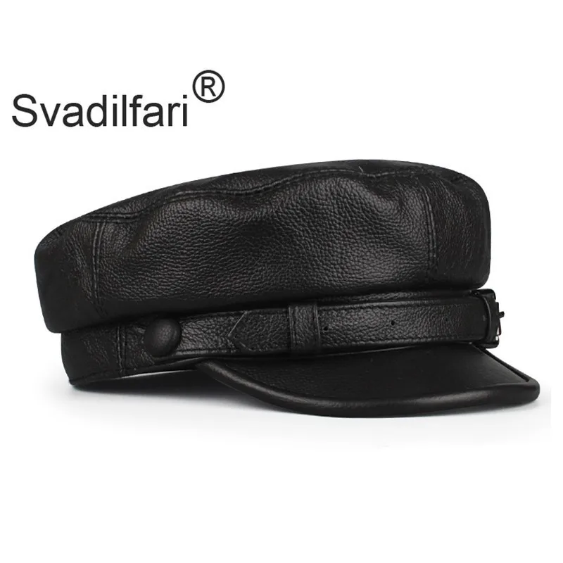 Название продукта: Мужская армейская Кепка Svadilfari, кожаные военные кепки, мужские повседневные Черные кепки капитана, ретро весенние регулируемые Роскошные Классические Кепки с плоским верхом
