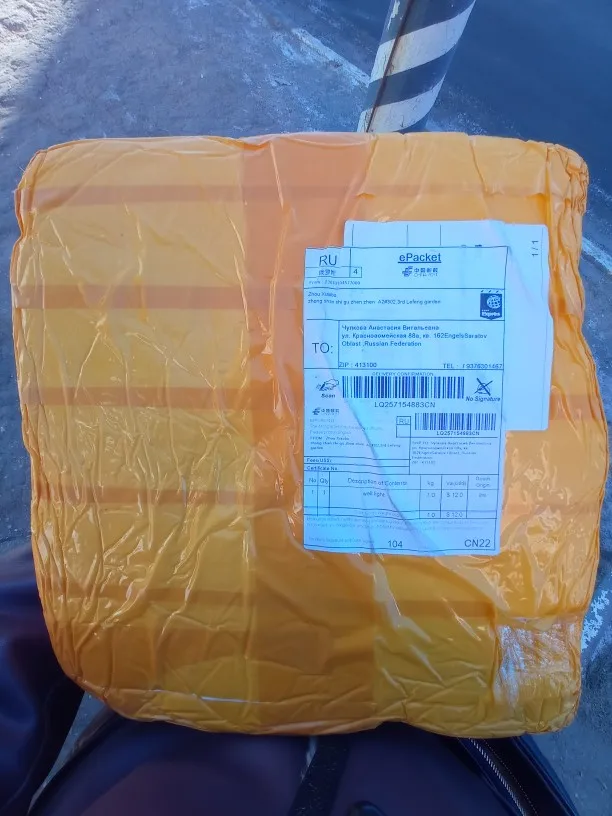 шла долго и не особо бился. потом как то резко вылез трек и дошел до адреса. внешне упаковоно мощно в пенопласт. в комплекте все что надо для крепежа и лампочка