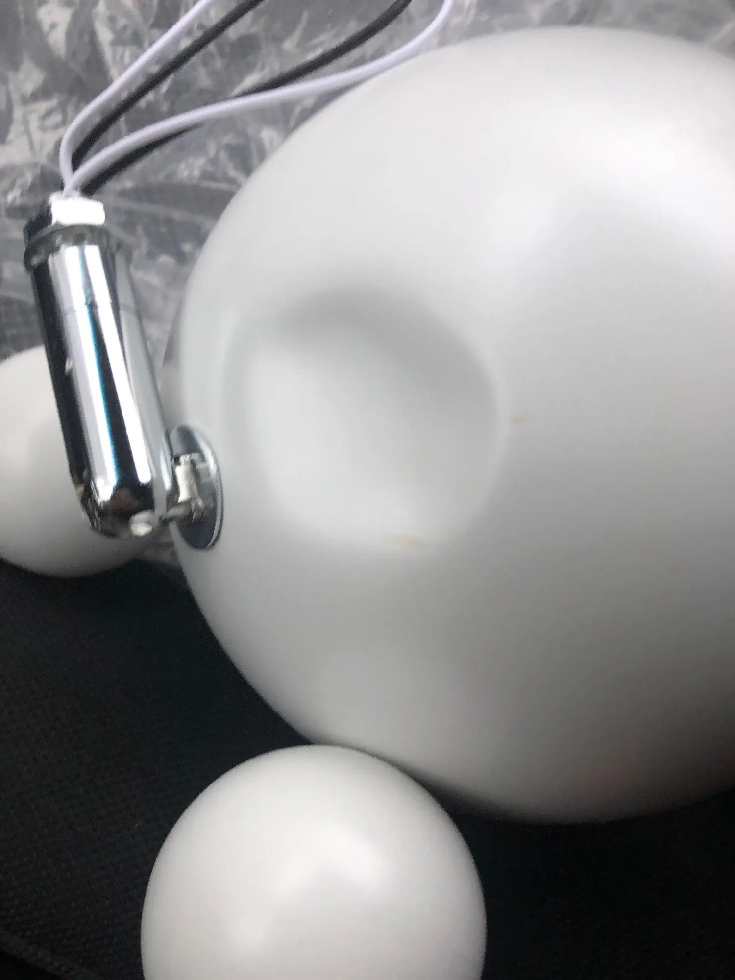 Товар дошел очень быстро. Лампа хорошо упакована. В комплект входила лампочка. На моей было 3 скола (2 основных на фото), скорее всего брак производства (на доставку крайне не похоже). В моем случае лампа висит так, что их не видно, плюс я еще их зашпаклюю и покрашу.