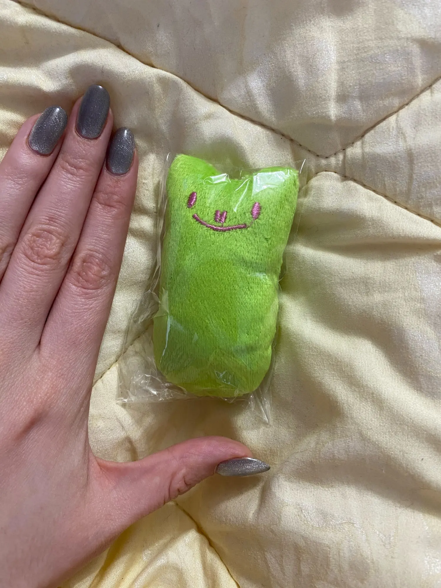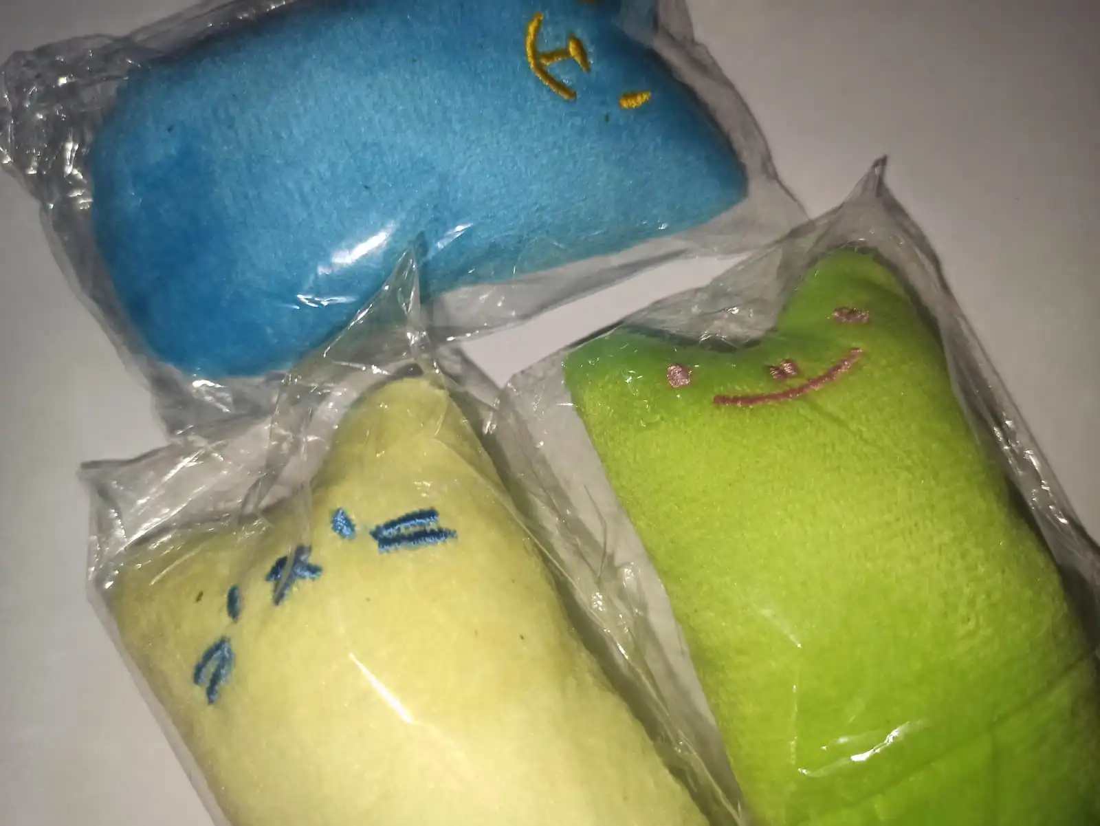 сама по себе игрушка маленькая, очень мягкая. внутри пакетик. имеет небольшой запах травы. коту нравится