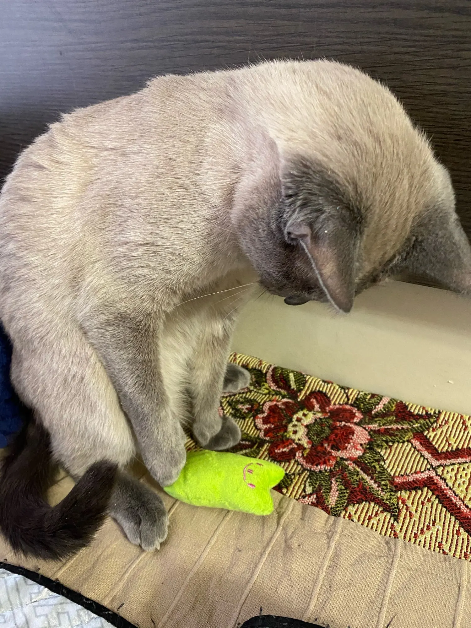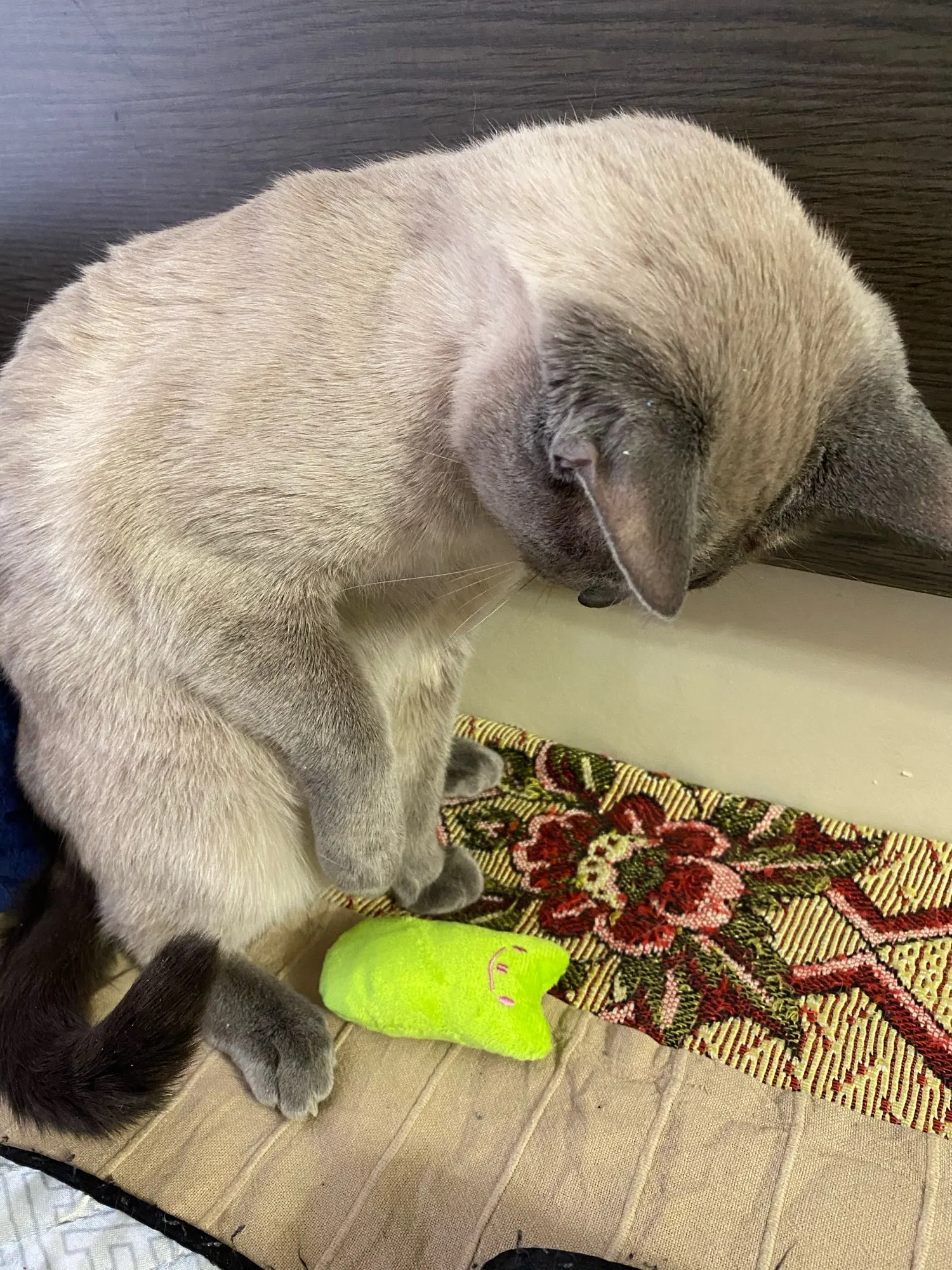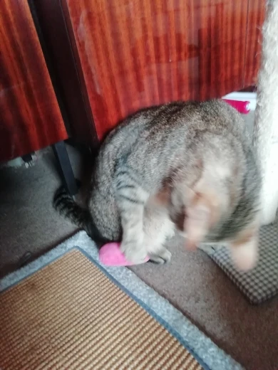 Кошка только что играла с ним несколько минут и потеряла интерес.