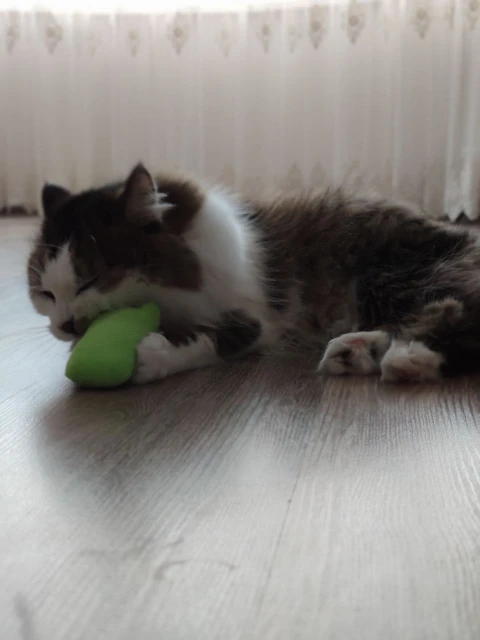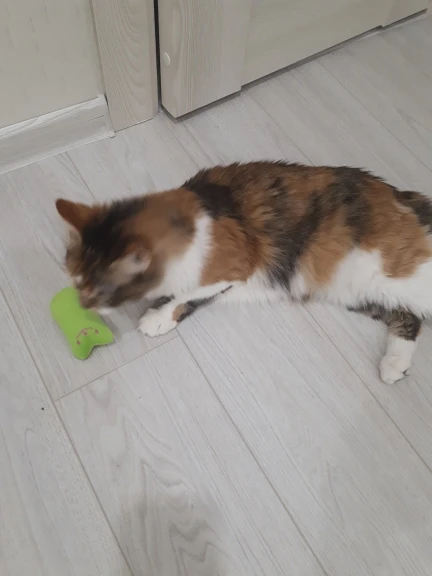 Мою кошку игрушка не заинтересовала совсем, понюхал и пошла дальше. Может попозже что-то изменится, будем надеяться....