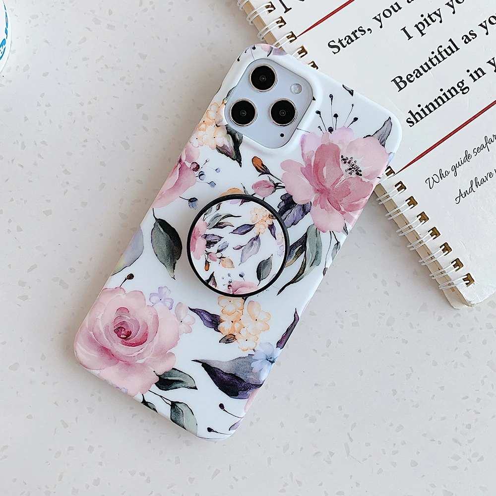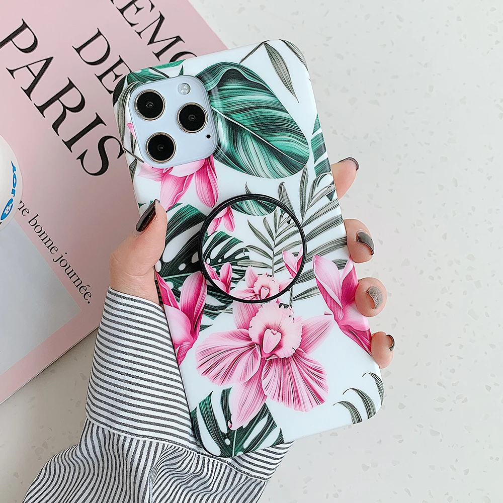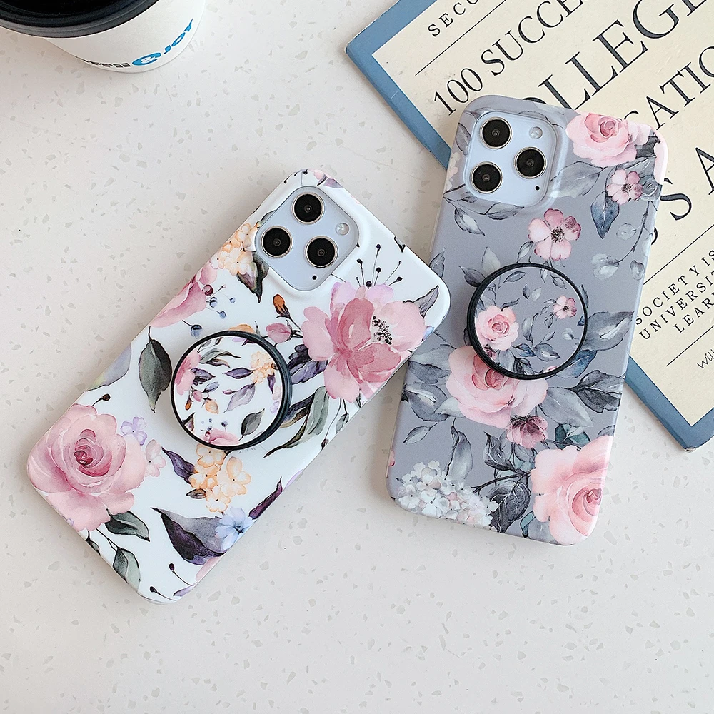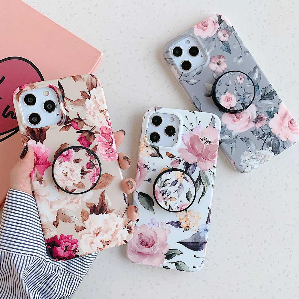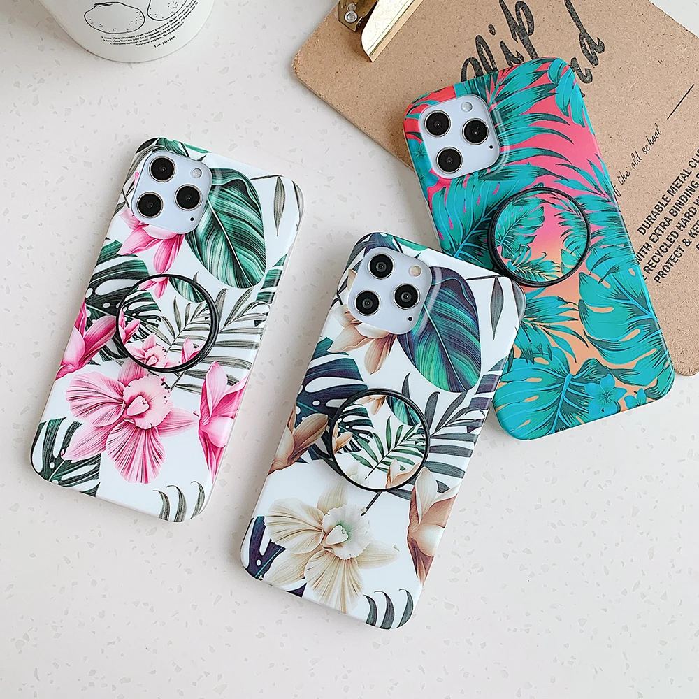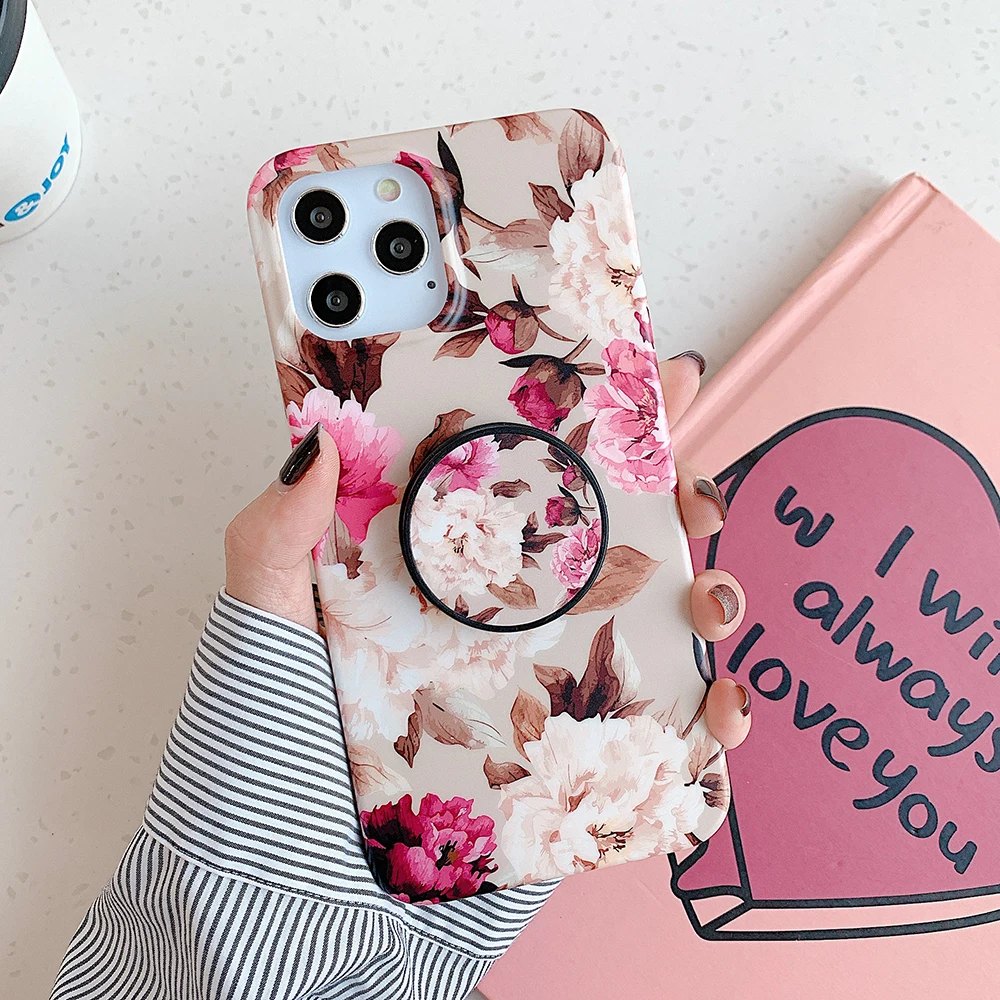 Чехол LOVECOM в стиле ретро с цветами и листьями и держателем для iPhone 13, 12, 11, Pro Max, XR, XS, Max, 7, 8 Plus, мягкий IMD чехол-накладка