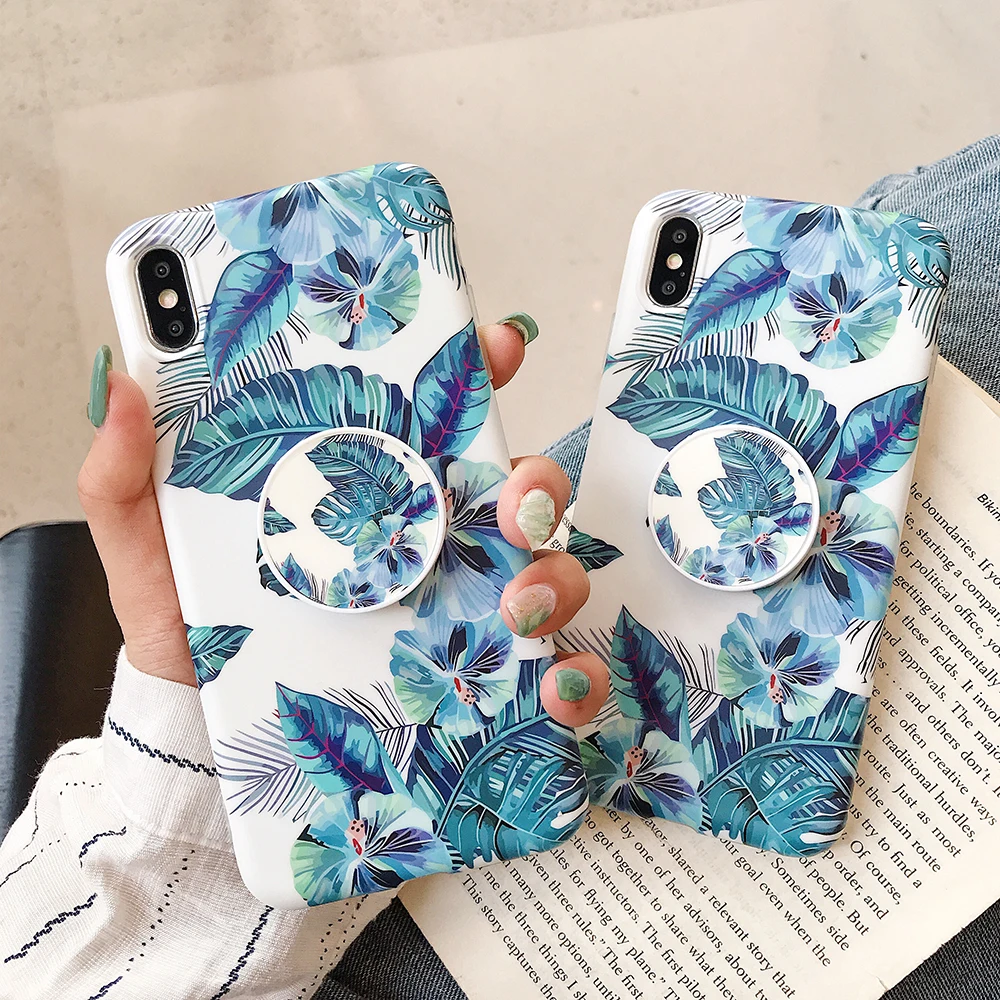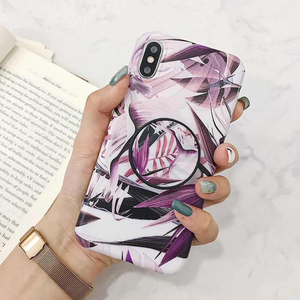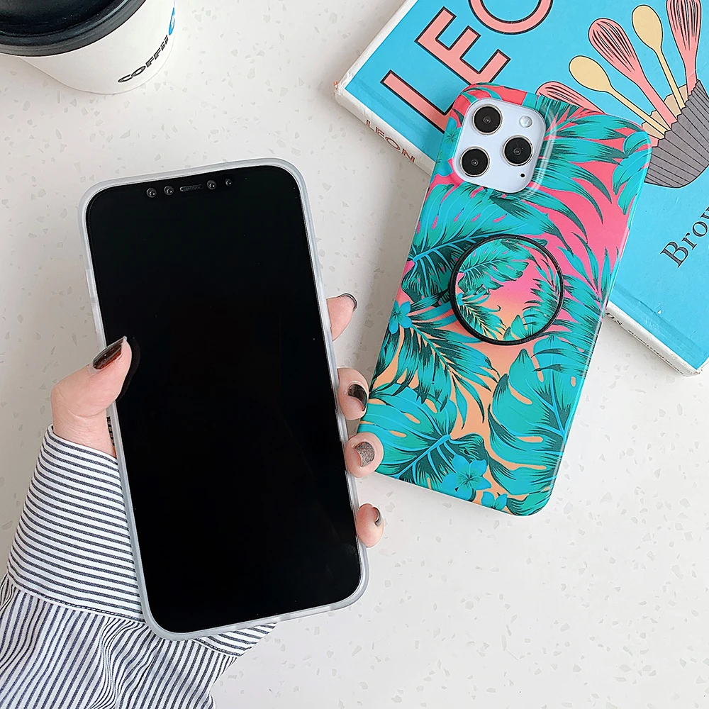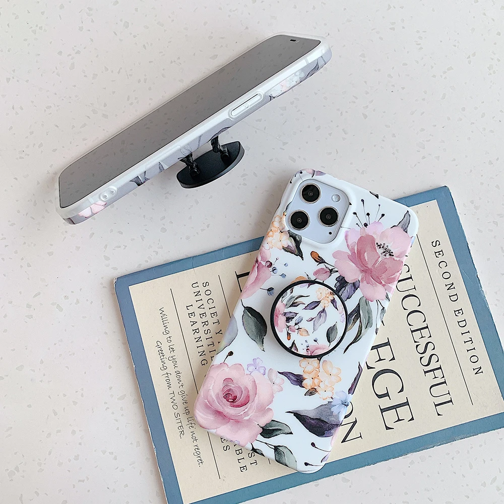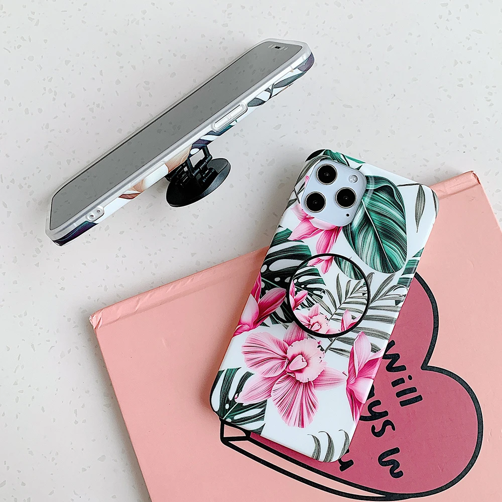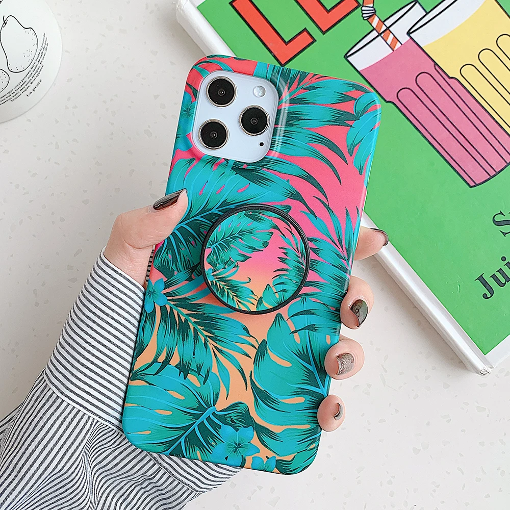 Чехол LOVECOM в стиле ретро с цветами и листьями и держателем для iPhone 13, 12, 11, Pro Max, XR, XS, Max, 7, 8 Plus, мягкий IMD чехол-накладка