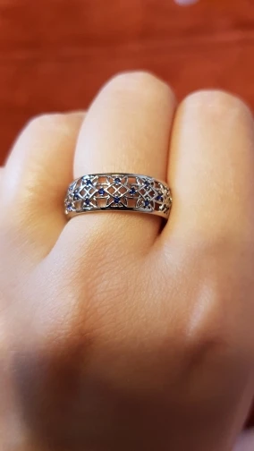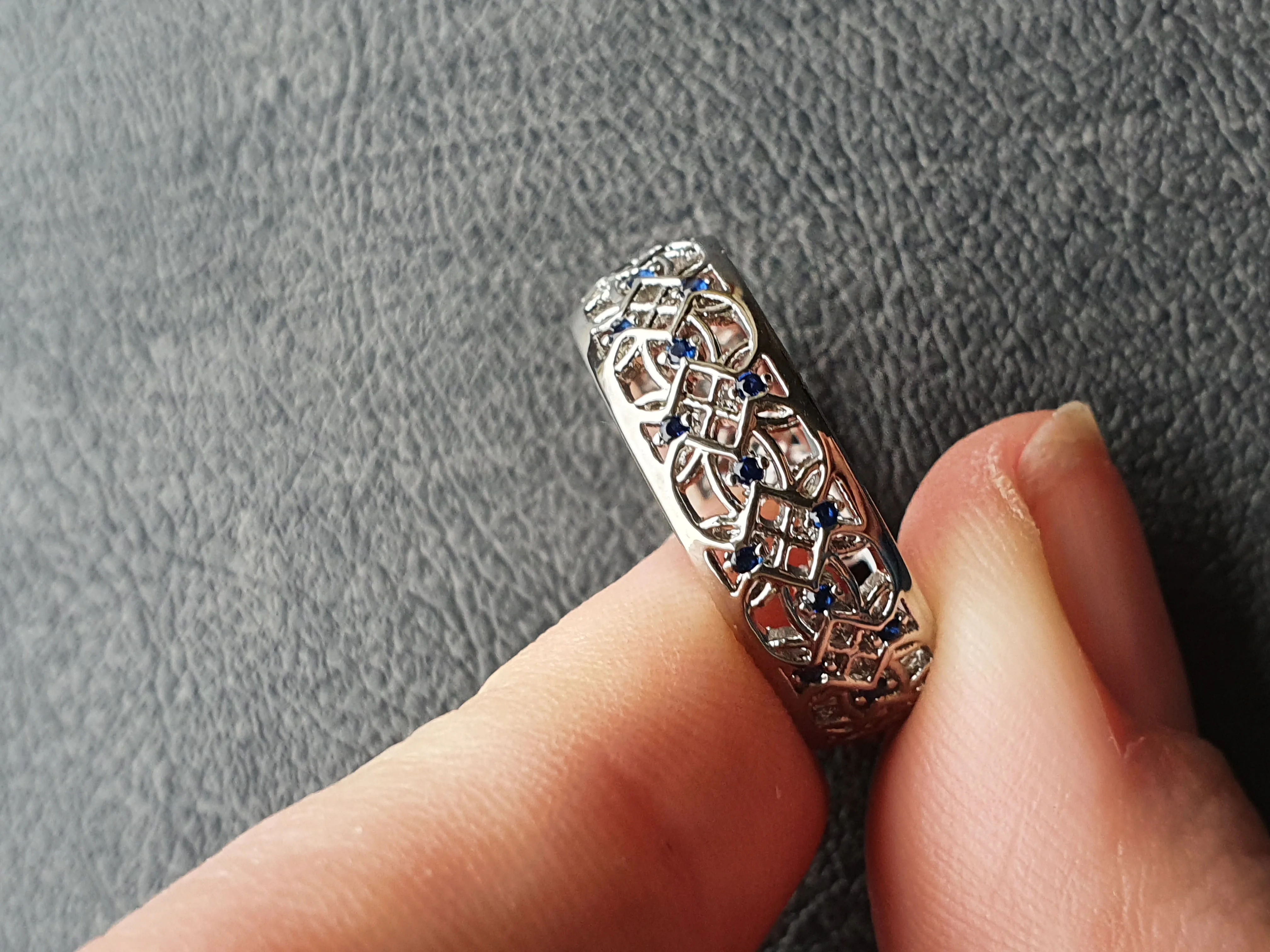 Красивое, аккуратное кольцо, все камни на месте. На российский 16 размер брала 6, чуть свободно, на 17 натянуть можно, но туго, так что скорее всего оптимально на 16,5. Отправка и доставка заняла 20 дней.