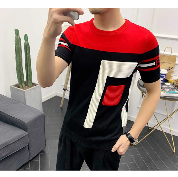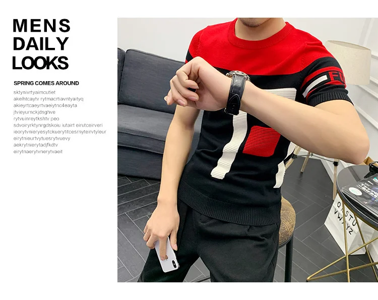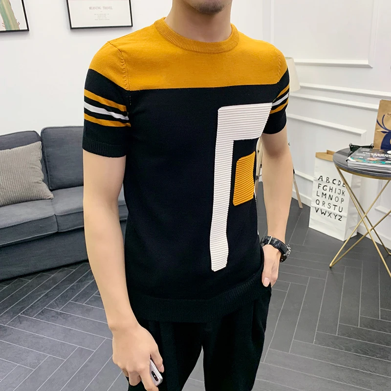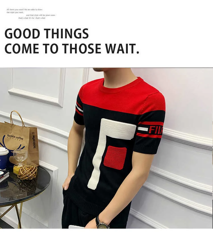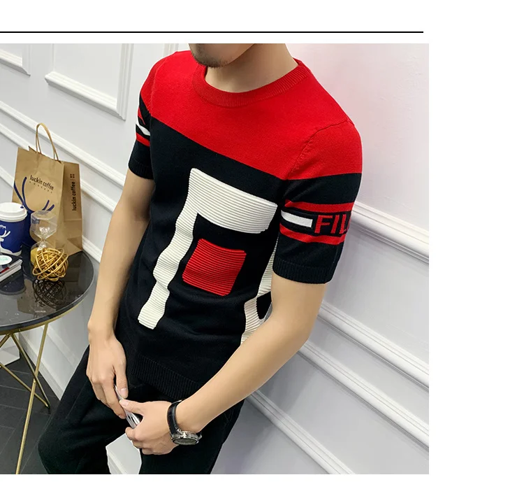4 сезона, платье, короткий рукав, мужская Трикотажная футболка, жаккард, высокое качество, уличная одежда, Круглый рукав, футболка, Camisetas Hombre