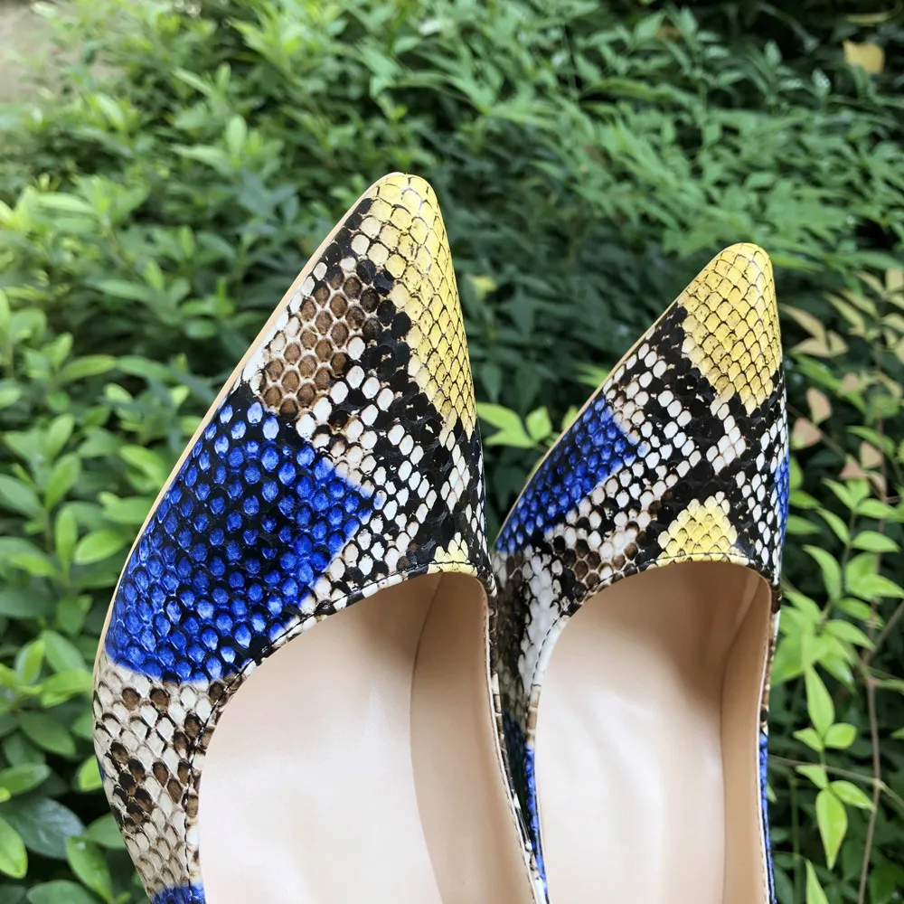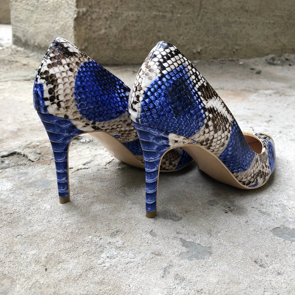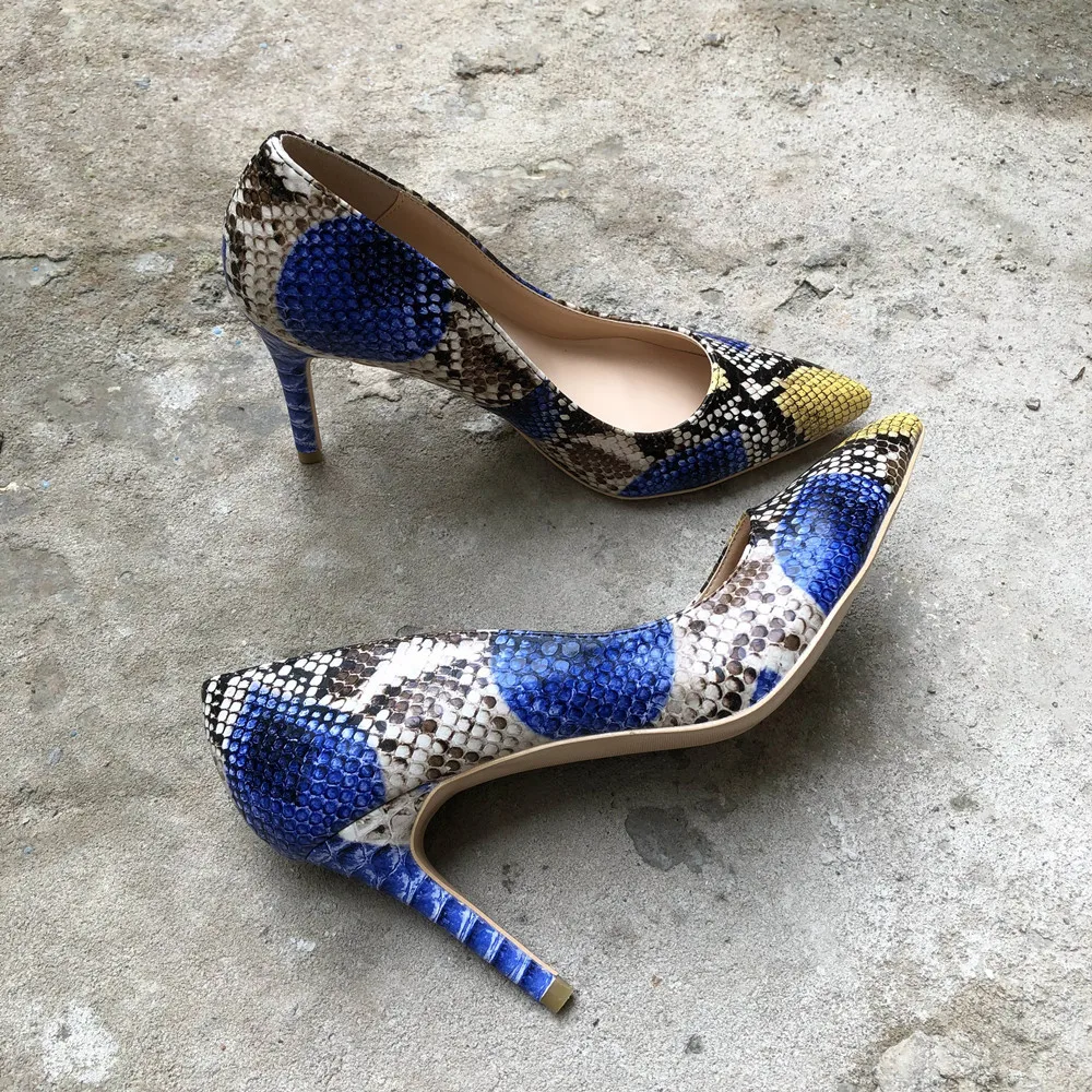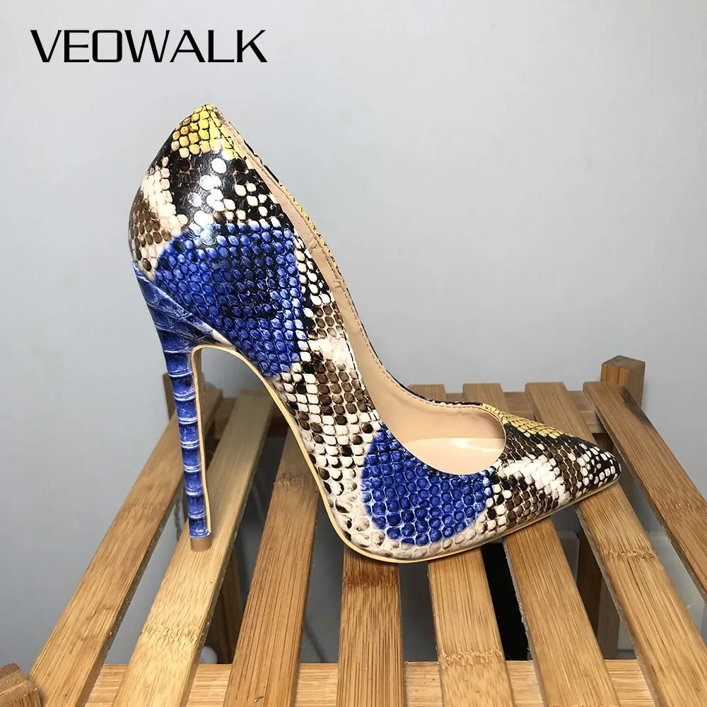Сексуальные тисненые женские туфли Veowalk со змеиным узором и острым носком на высоком каблуке, женские туфли-лодочки без шнуровки, модная женская обувь для ночного клуба