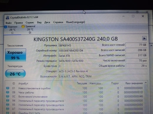 Этот SSD спроектирован для использования с настольным ПК или ноутбуком и не предназначен для работы на серверах.