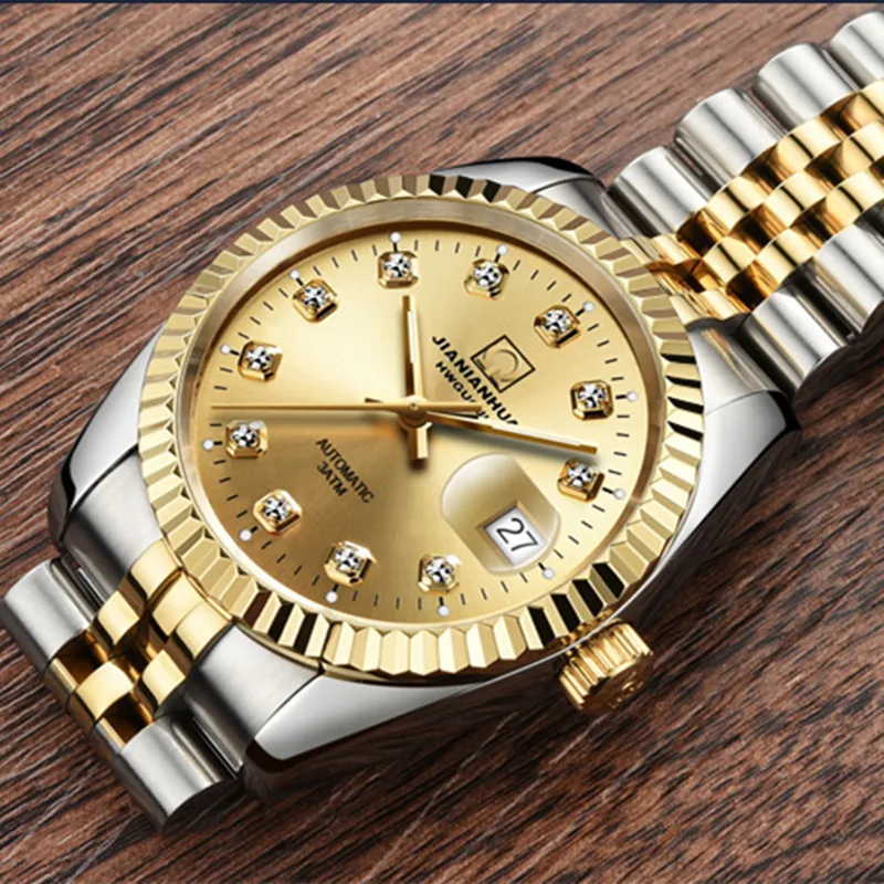 Карнавальные мужские часы, механические золотые Роскошные модные брендовые мужские спортивные часы из нержавеющей стали, мужские автоматические часы