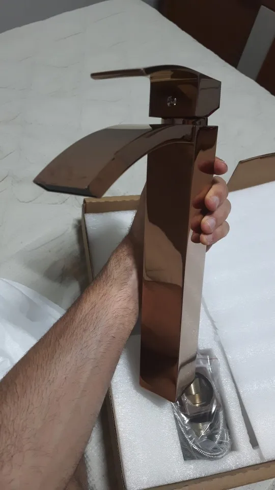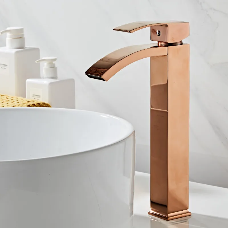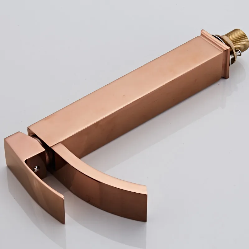Латунный Смеситель для раковины, кран для ванной комнаты с одной ручкой, розовое золото, водопад