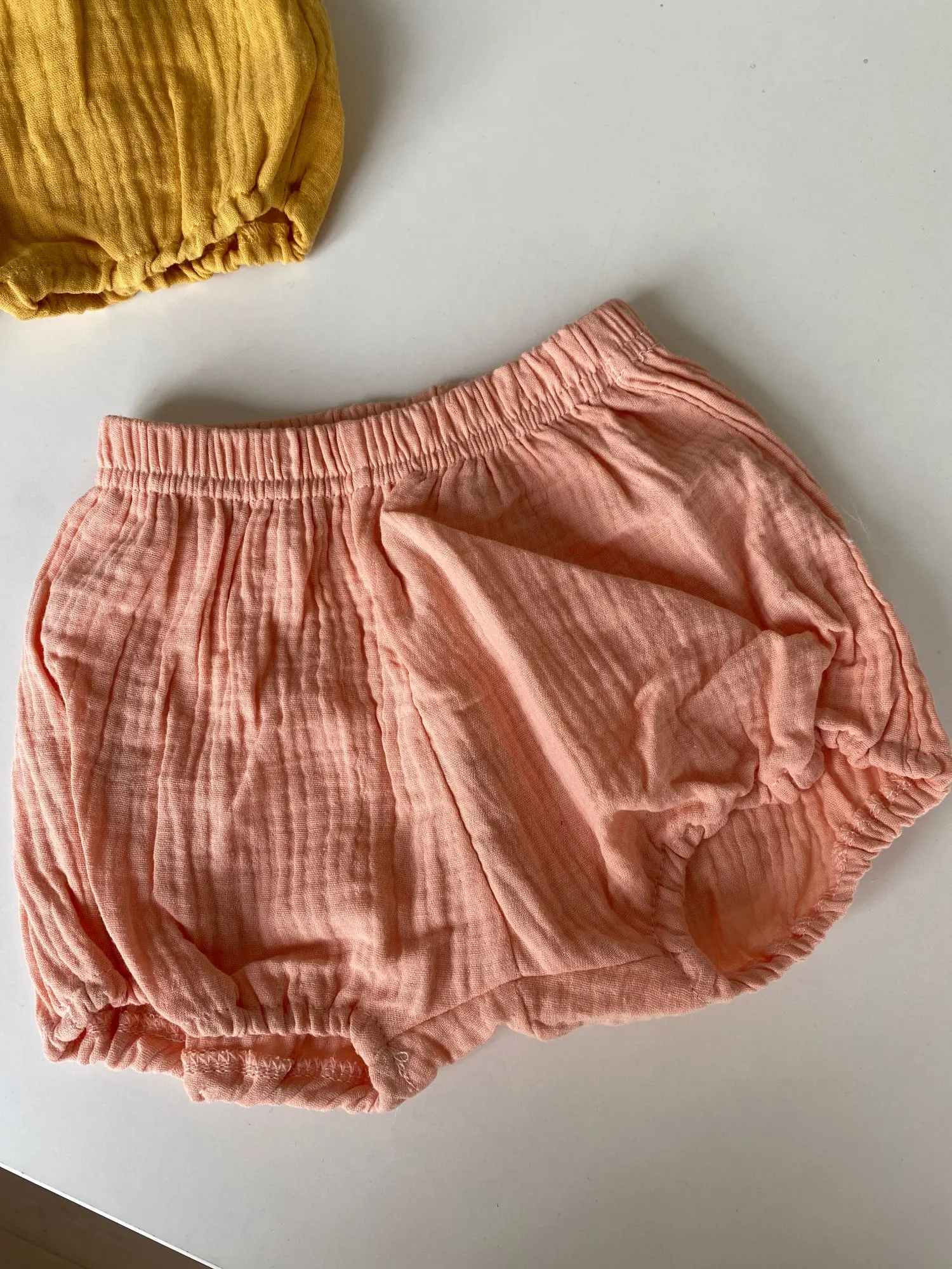 Шортики шли ровно месяц. На ребёнка 12кг 1,3 год сели свободно, нигде не давят. Очень тонкий муслин, просвечивает. На жаркое лето отличный вариант. Закажем в других цветах.