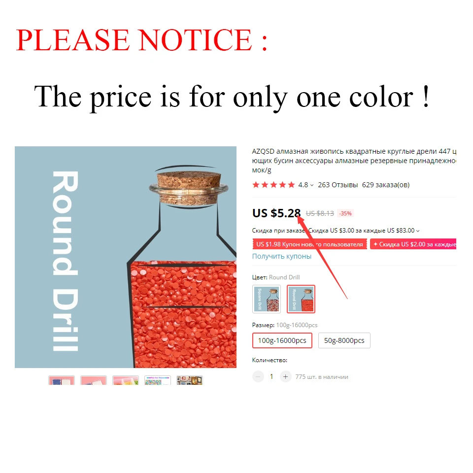 Страна: FR Color: Round Drill Size: 100g-16000pcs Доставка: Standard Shipping 17.12.2020