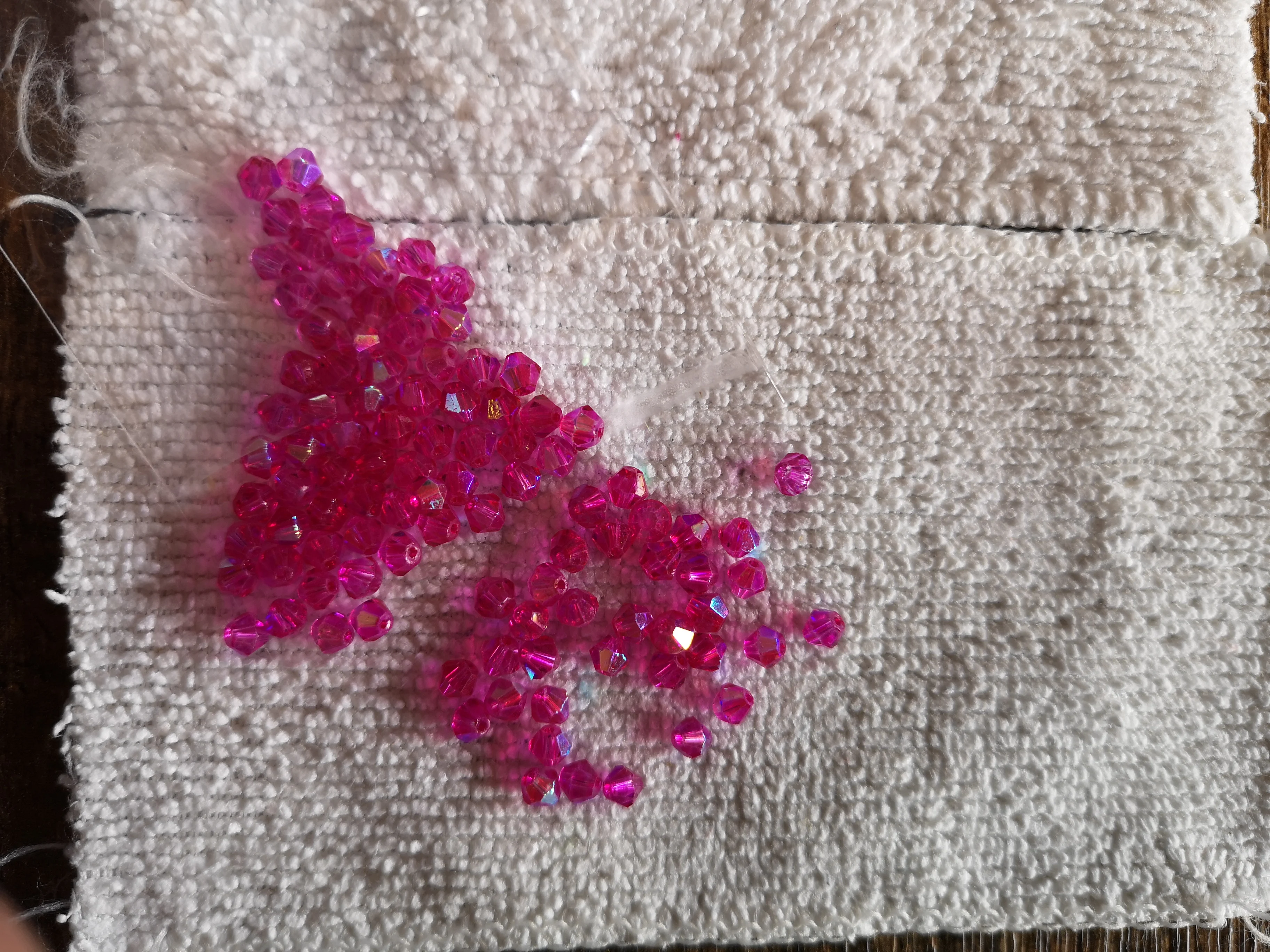 Material:Crystal Glass Beads Size: 4mm Shape: Bicone Quantity: 100pcs/pack Hole Size: ≈0.8mm These 4mm bicone beads are diamond shaped with 24 precision cut facets to provide the ultimate in sparkle. They come in packs of 100 beads and are suitable for stringing on wire, thread or stretch elastic of 0.8mm diameter or smaller and are perfect for adding some glitz or glamour to your jewellery designs.