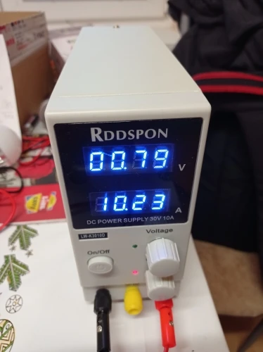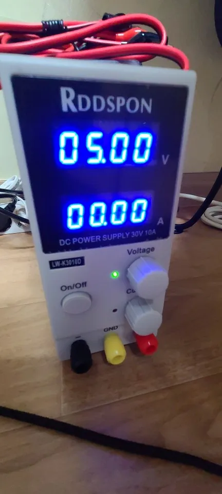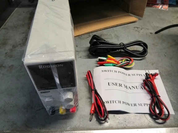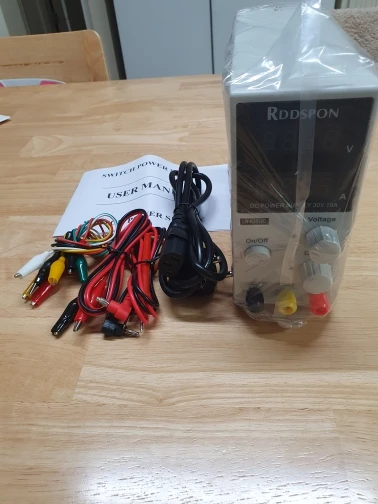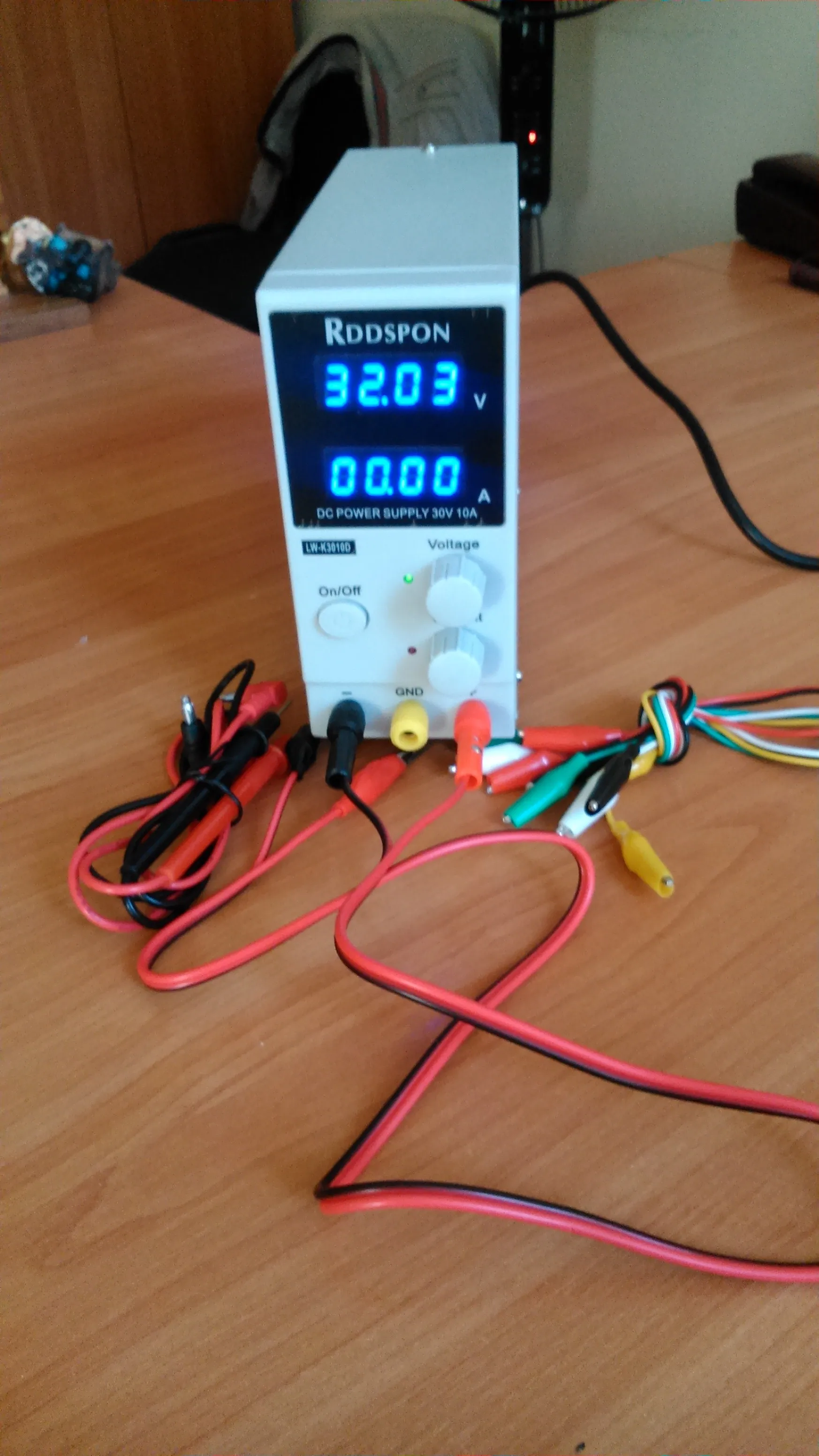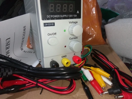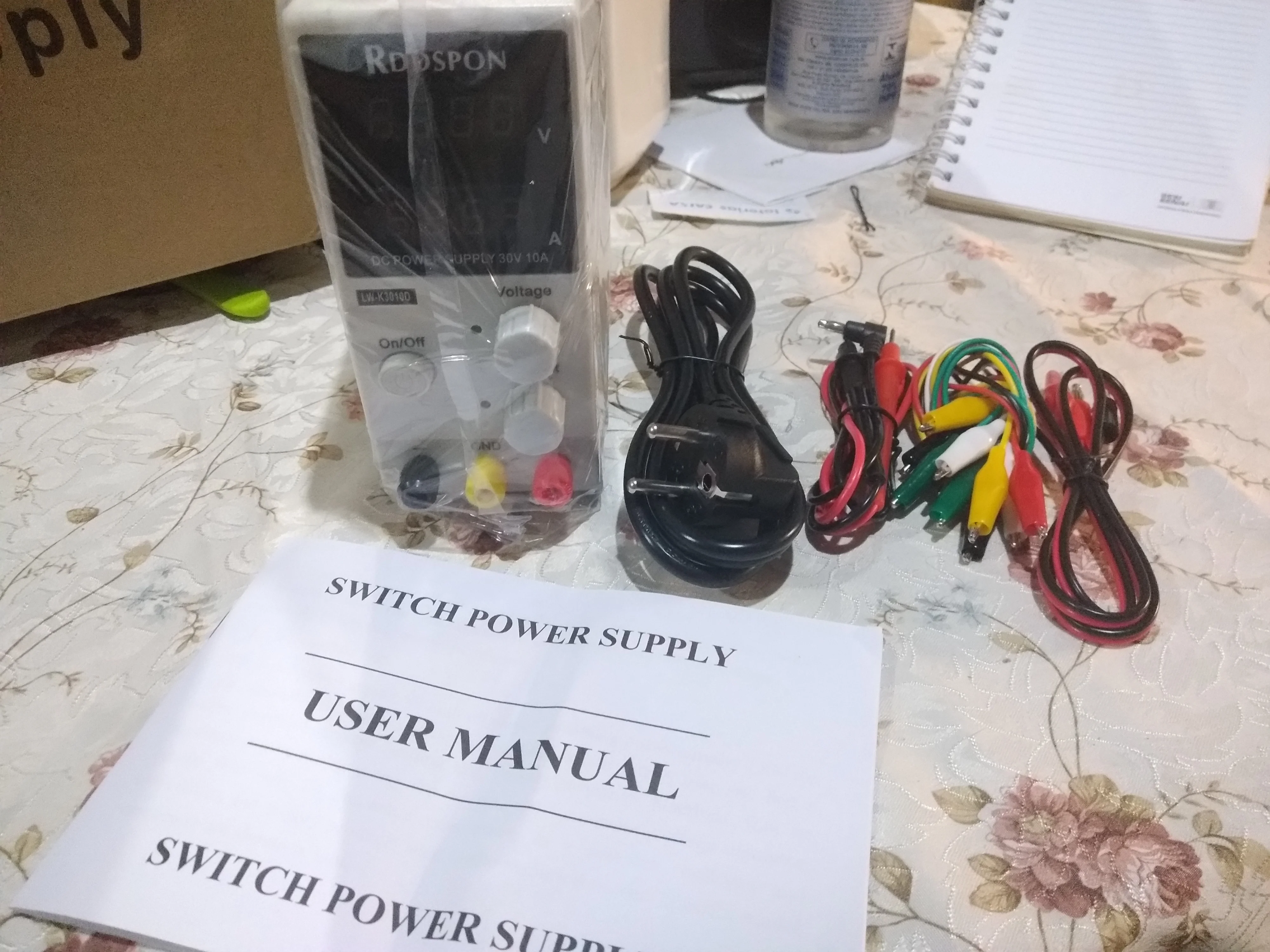 Пришел моментально. Довольно компактный, на столе места почти не занимает, сделан добротно, в комплекте соединительные провода с разноцветными крокодилами, 5 штук. Мелочь, а приятно. Так же "рабочий" кабель с крокодилами и такой же, но с щупами. Все на "бананах". Удобно не только зацепиться крокодилами, но и поработать щупами, где крокодилы бессильны. Все это я мог сделать и сам, но тут уже из коробки все готово. Многооборотные переменные резисторы позволяют настроить ток и напряжение довольно тонко, не до сотых, но десятые - легко. Единственное, что слегка смутило - какое-то легкое поскрипывание переменников и слегка запоздалая реакция электроники на регуляцию, но, возможно, это норма.