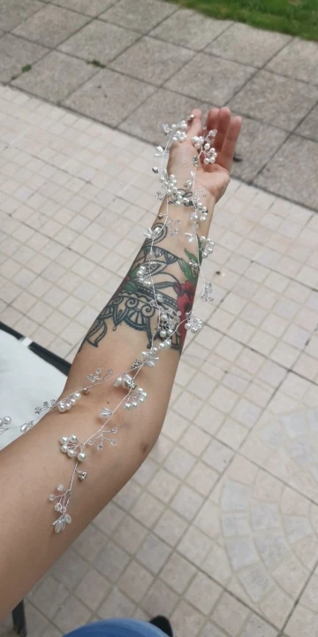 Повязка на голову женская, серебристого цвета, длиной 50 см