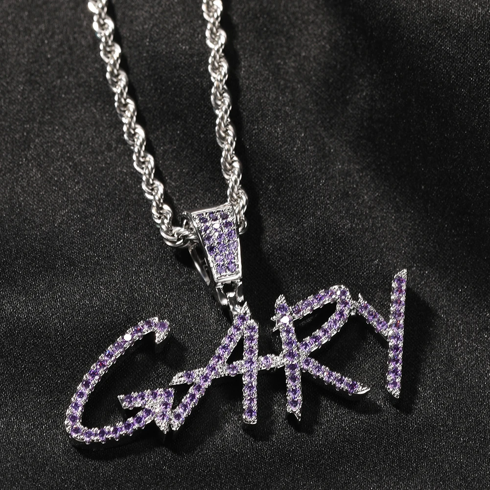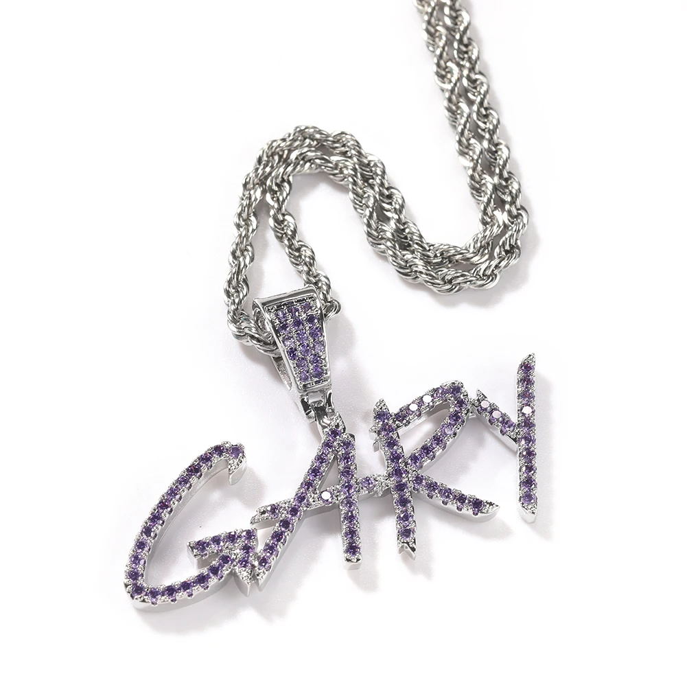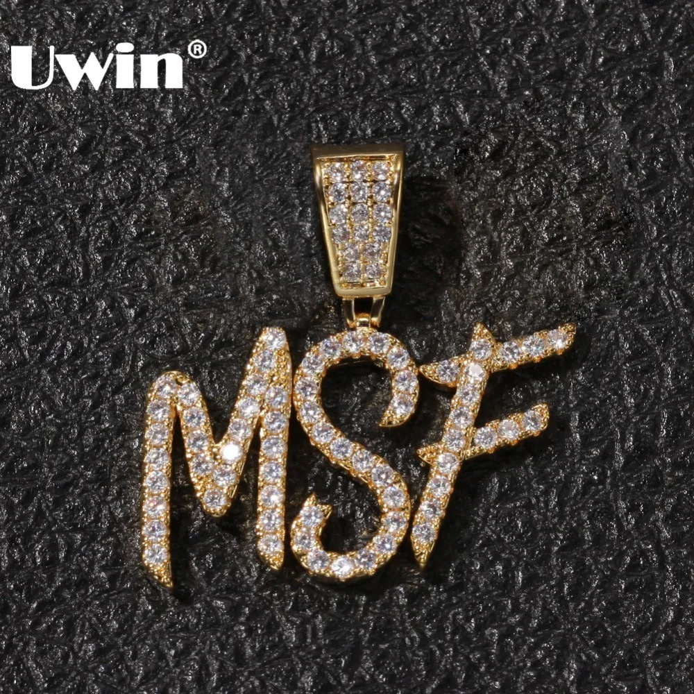 UWIN Новинка в стиле "хип-хоп" пользовательское имя скорописи начальных букв кулон Цепочки и ожерелья слова Полное со льдом кубического циркония ювелирных изделий цепи
