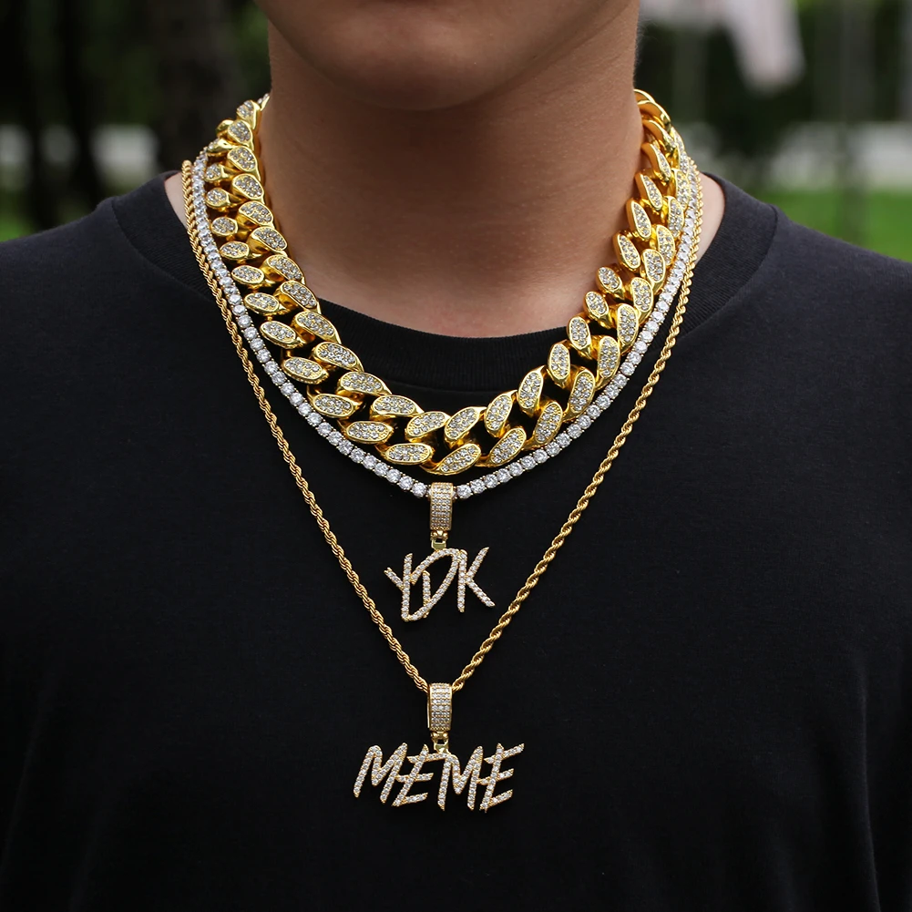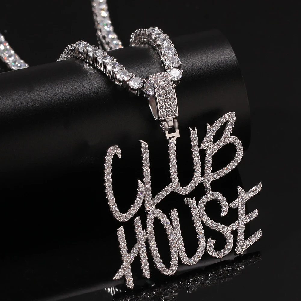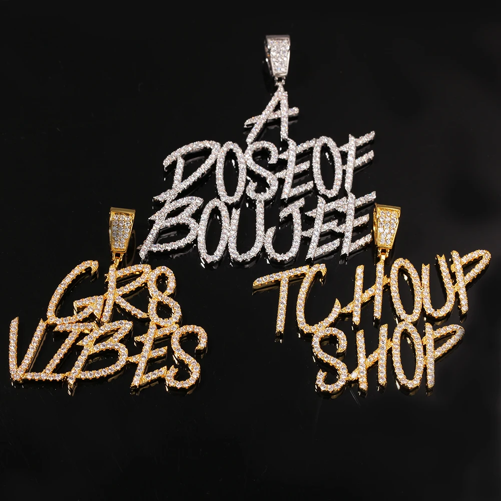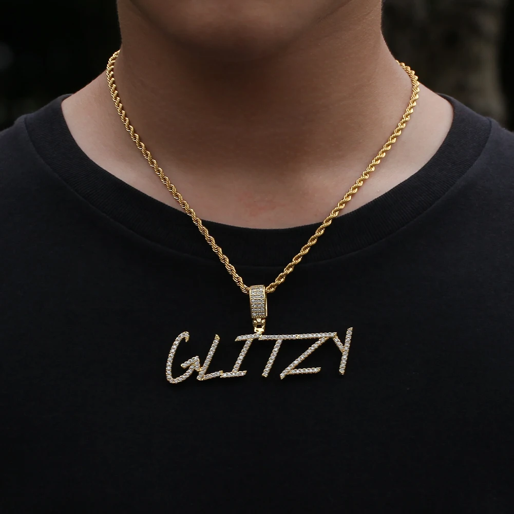 UWIN Новинка в стиле "хип-хоп" пользовательское имя скорописи начальных букв кулон Цепочки и ожерелья слова Полное со льдом кубического циркония ювелирных изделий цепи