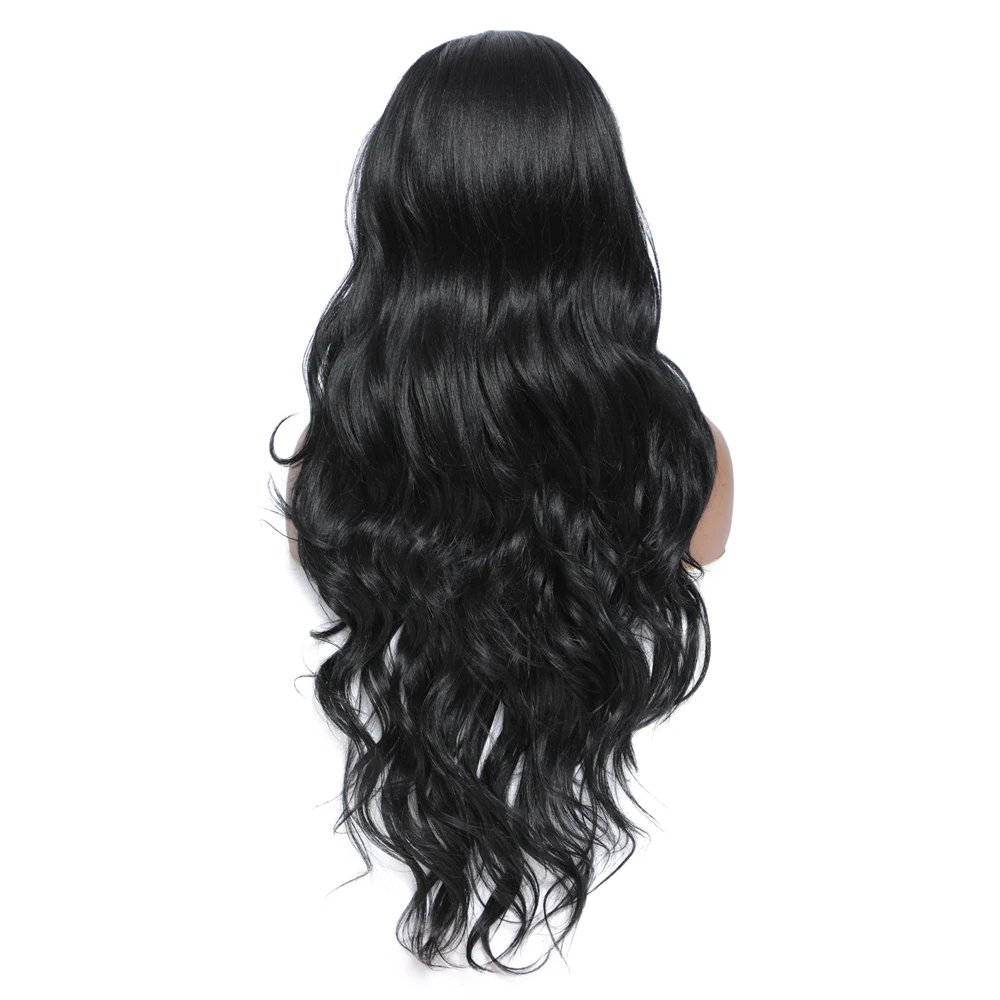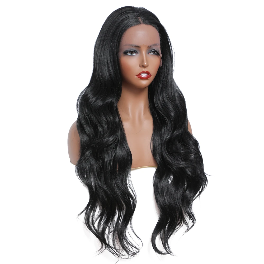 Парики черного цвета из синтетического кружева передние парики для черных женщин X-TRESS 28 дюймов длинные волнистые волосы свободные части парик с естественной линией волос