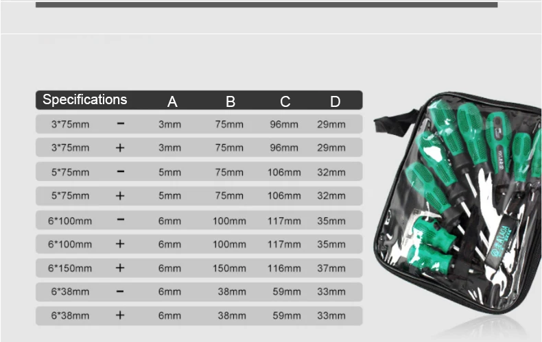 А. Обработка наконечников, магнитное противоскользящее покрытиеB. В соответствии с эргономичным дизайном, двухцветная Нескользящая ручкаC. Аутентичный логотип LAOAD. Стержень драйвера-хромированная ванадиевая сталь (CR-V), степень твердости (HRC)-52 градусная Хромовая обработка, защита от ржавчины.Е. Конец изысканного изготовления, термопластичная резиновая ручка двойного цвета, удобная ручка.