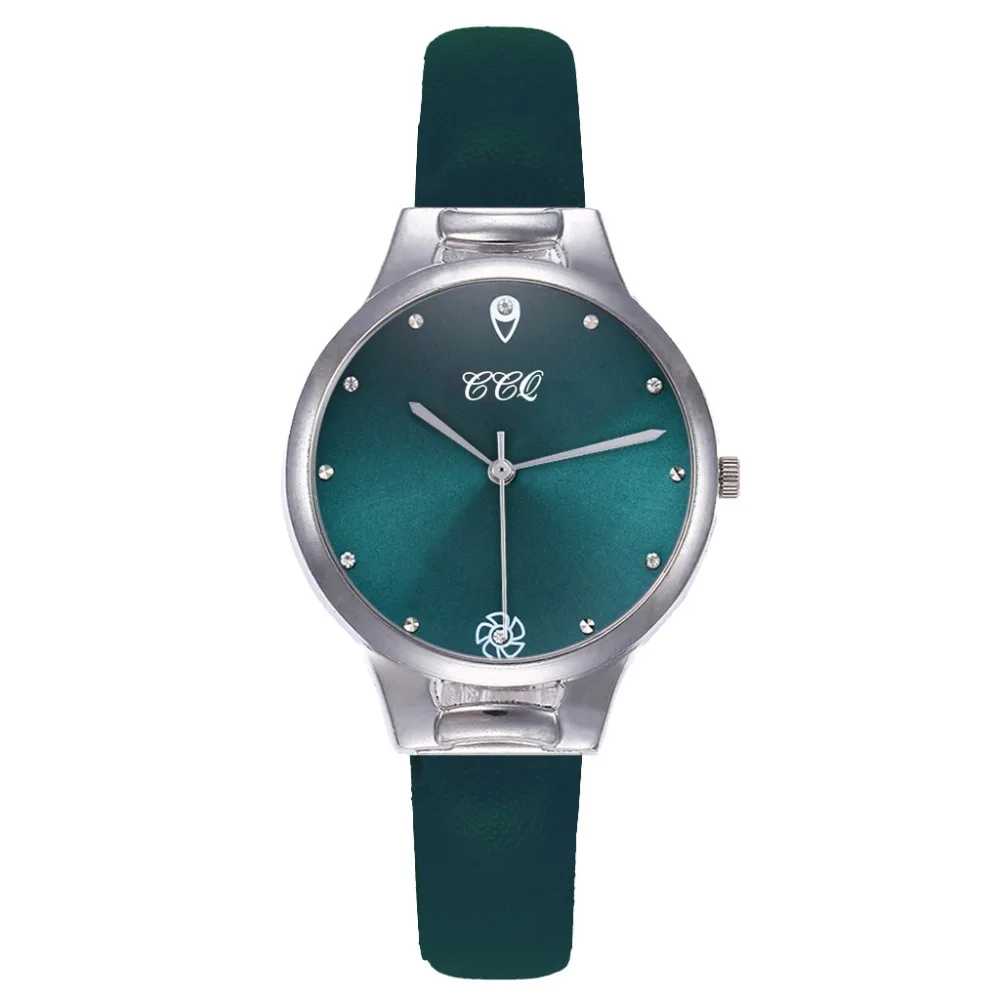 Часы наручные женские кварцевые с зеленым циферблатом, роскошные модные креативные, с кожаным ремешком, подарок под платье, @ 50