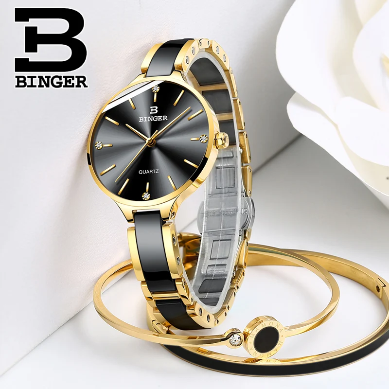 Керамические кварцевые часы Binger, женские модные часы класса люкс...