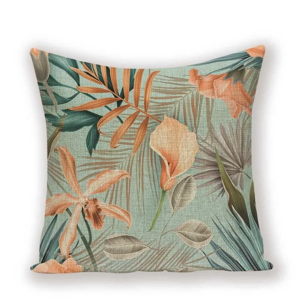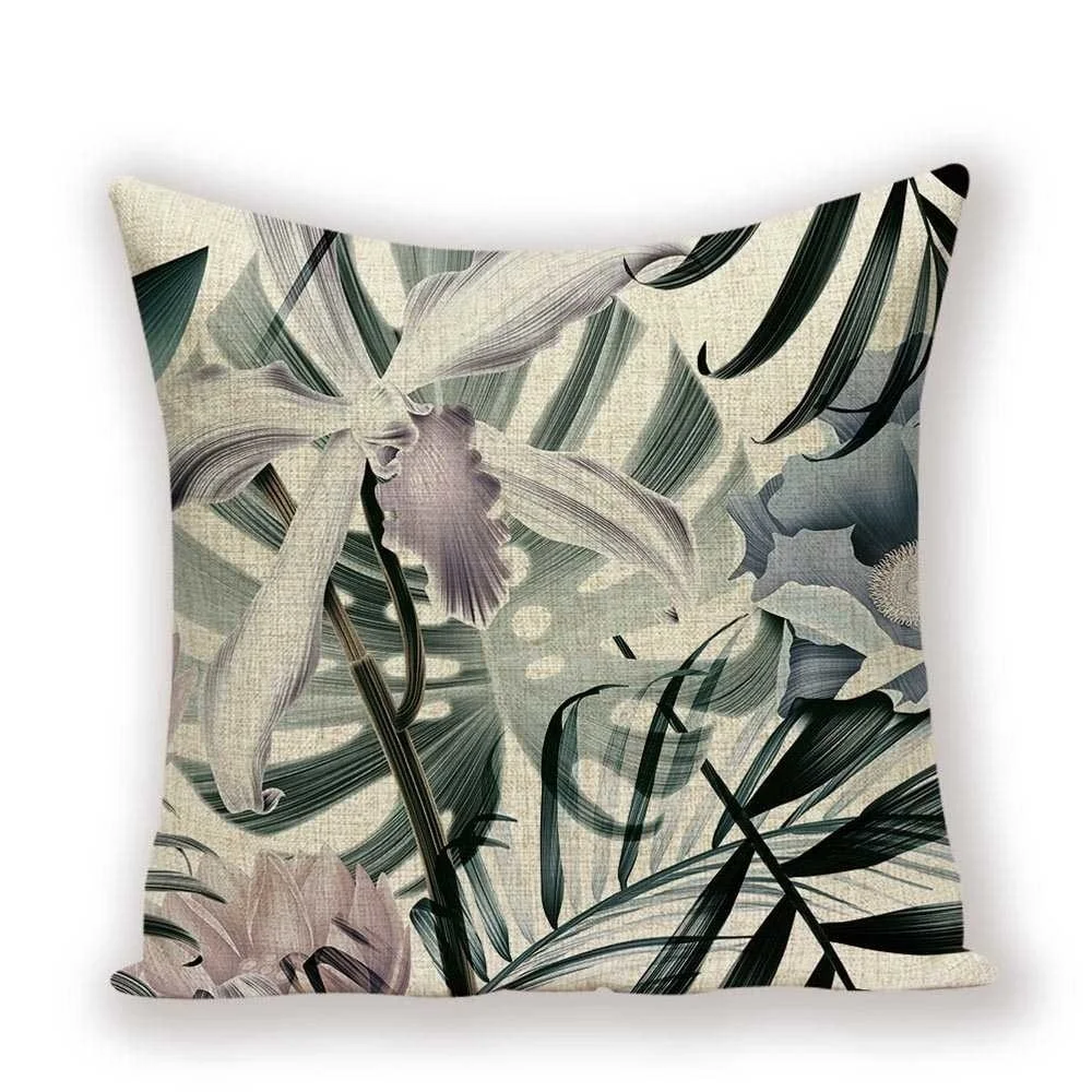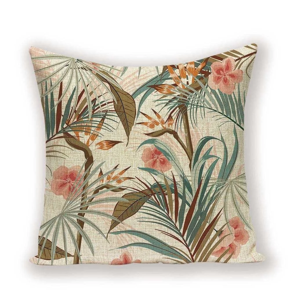 Тропические растения Подушка Чехол Ретро подушка с цветочным принто...