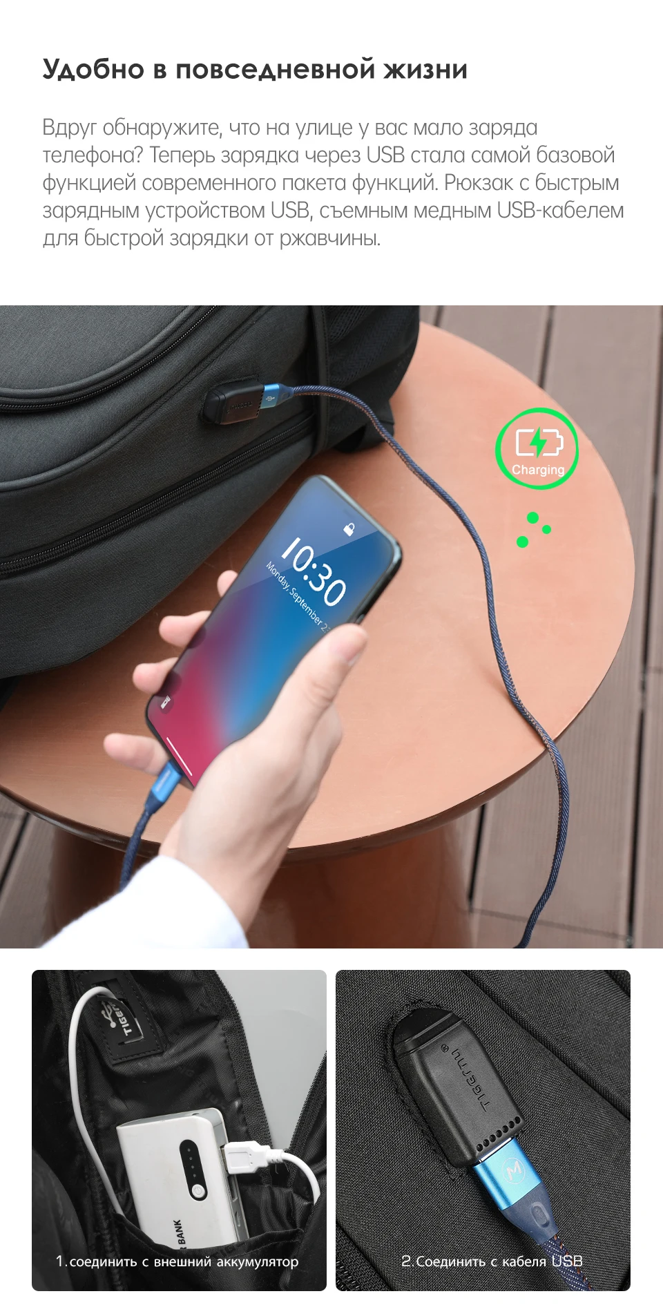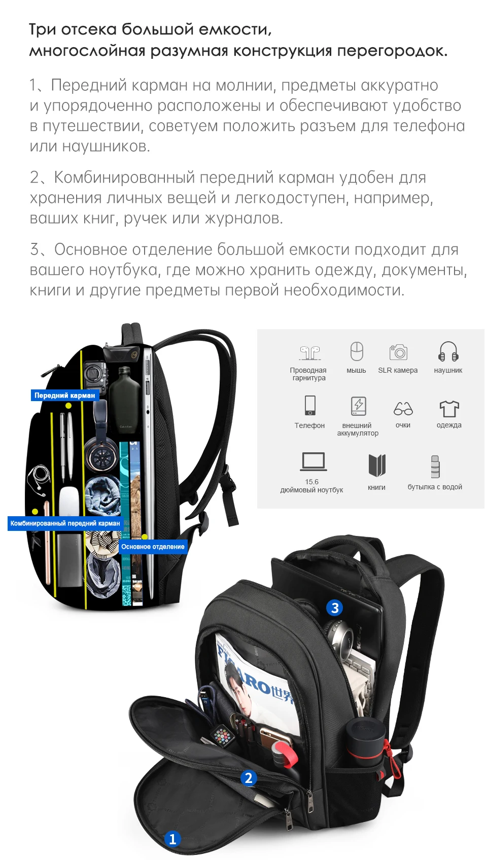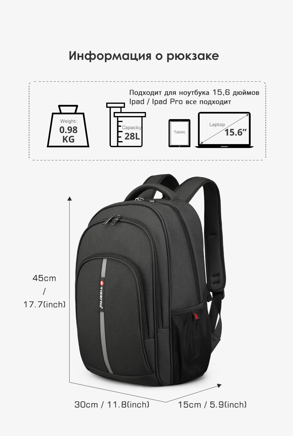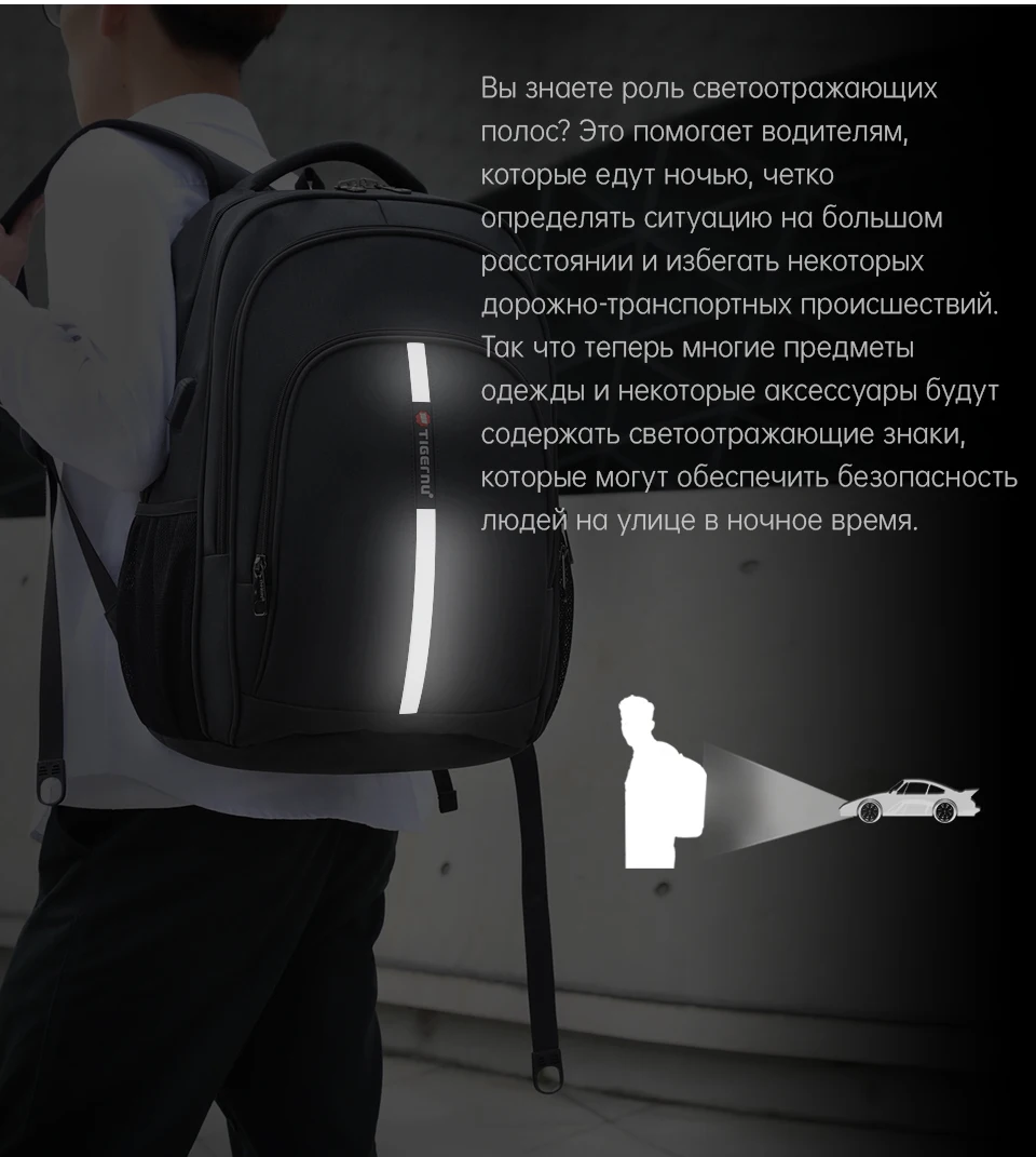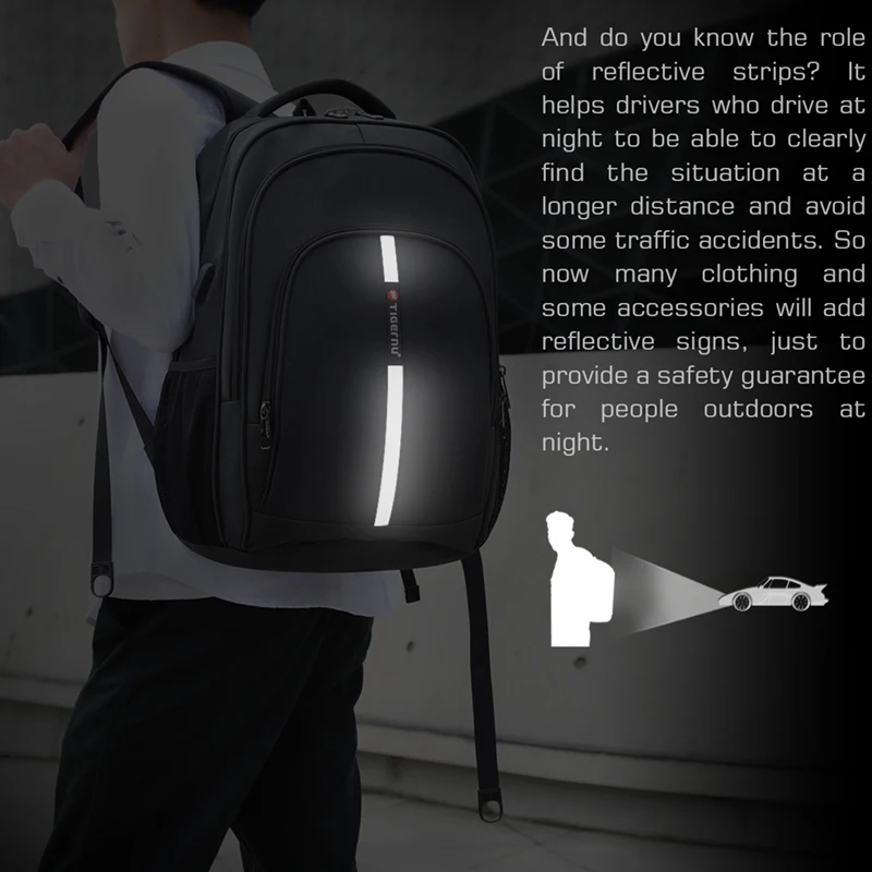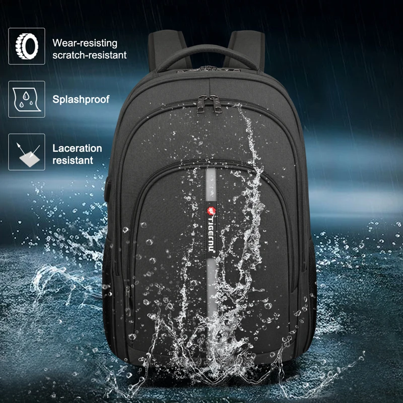 Tigernu Рюкзак Мужской Большой емкости Водостойкий Рюкзаки для ноутбуков 15,6-дюймовый дорожная сумка с отражающей полоской USB Зарядка