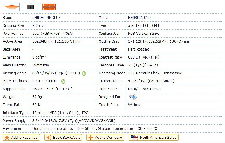 Описание товараОбщие характеристики-Размер ЖК-дисплея: 8,0 дюйма (диагональ)-Элемент драйвера: активная матрица a-Si TFT-Разрешение: 1024*3(RGB)* 768-Режим отображения: обычно белый, прозрачный-Шаг точки: 0,05 (Ш) x 0,15 (В) мм-Интерфейс: ЦифровойИнтерфейсы платы драйвера1. Блок питания (5-12 В, 2 а), ЖК-панель не включает зарядное устройство, вы можете заказать блок питания Kuman 12 В, 2 А (Asin:B01GDX6PW4) от usThe LCD Panel, не включает зарядное устройство, вы можете заказать у нас блок питания Kuman 12 В, 2 А (Asin:B01GDX6PW4).2.HDMI3. Разъем VGA4.AV15.AV1 + AV26. Клавиатура7. Сигнал TTL8. Сигнал LVDS 1/2 ch 6 бит 8 битПодсветка 9,12 в10. Разъем инвертораПримечание 1: блок питания в комплект не входит, без сенсорной панели, если вам нужна сенсорная панель, свяжитесь с нами.Примечание 2: Эта плата контроллера поддерживает автоматическое переключение на AV2 (просмотр камеры заднего вида).Рабочее напряжение: источник питания (5-12 В> 1 а), может быть напрямую от USB-порта компьютера или внешнего аккумулятора! (Специальное напоминание: требования к полярности вилки питания: внутренний положительный и внешний отрицательный-положительный и отрицательный не могут быть отменены, чтобы не повредить печатную плату)Примечание 3: пять кнопок следующие: S1 = Power, S2 = меню/Select, S3 = Up, S4 = Down, S5 = Video