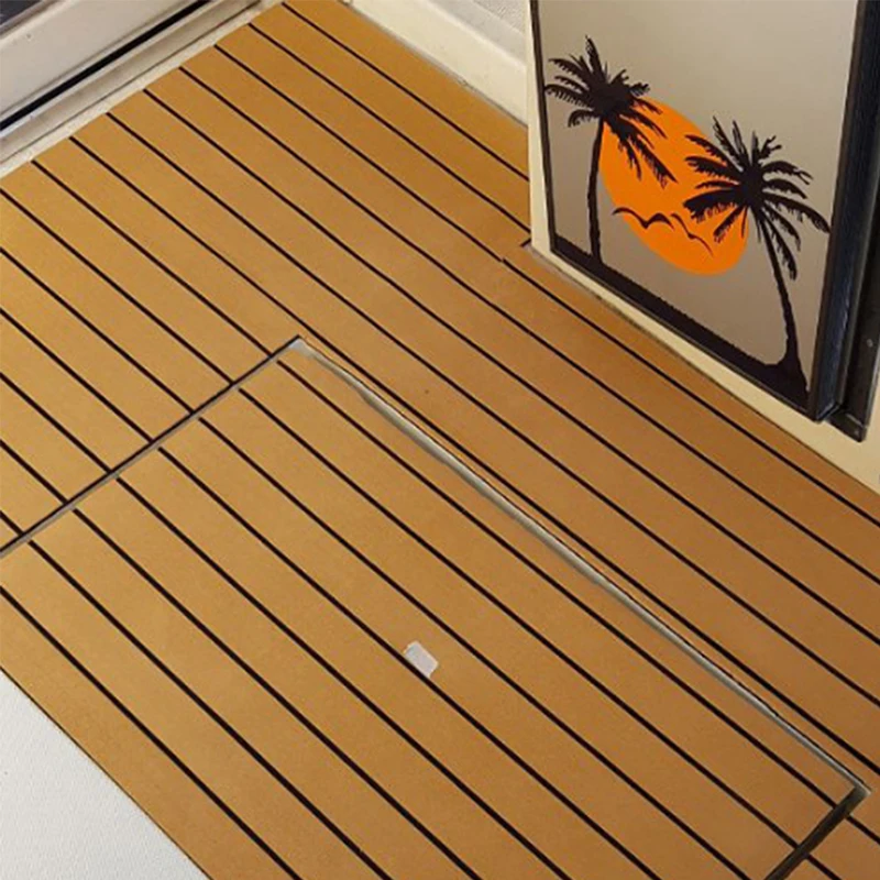 -Листы 23 дюйма в ширину х 94 дюйма в длину х 6 мм в толщину, тик с черным швом и могут быть легко отрезаны, чтобы соответствовать практически любой поверхности на лодке, где не скользит, или требуется защита поверхности лодки.