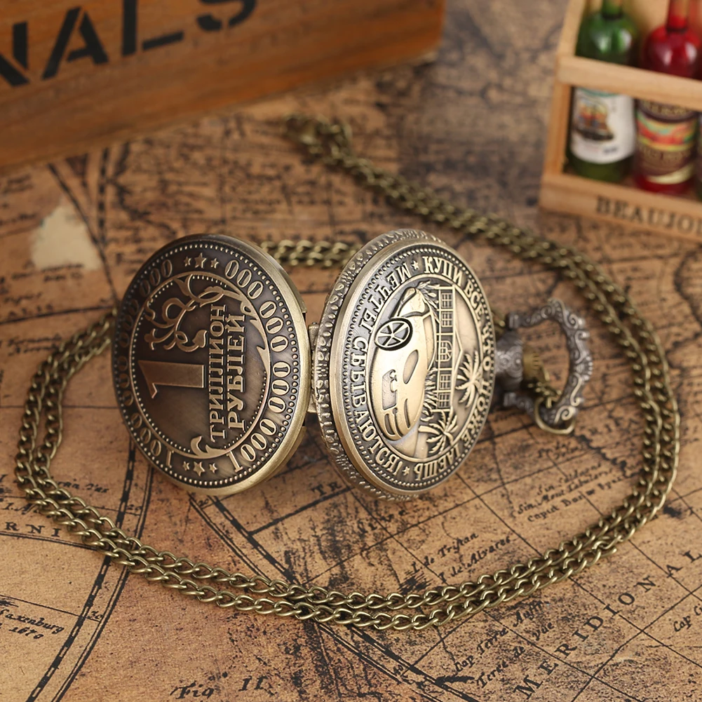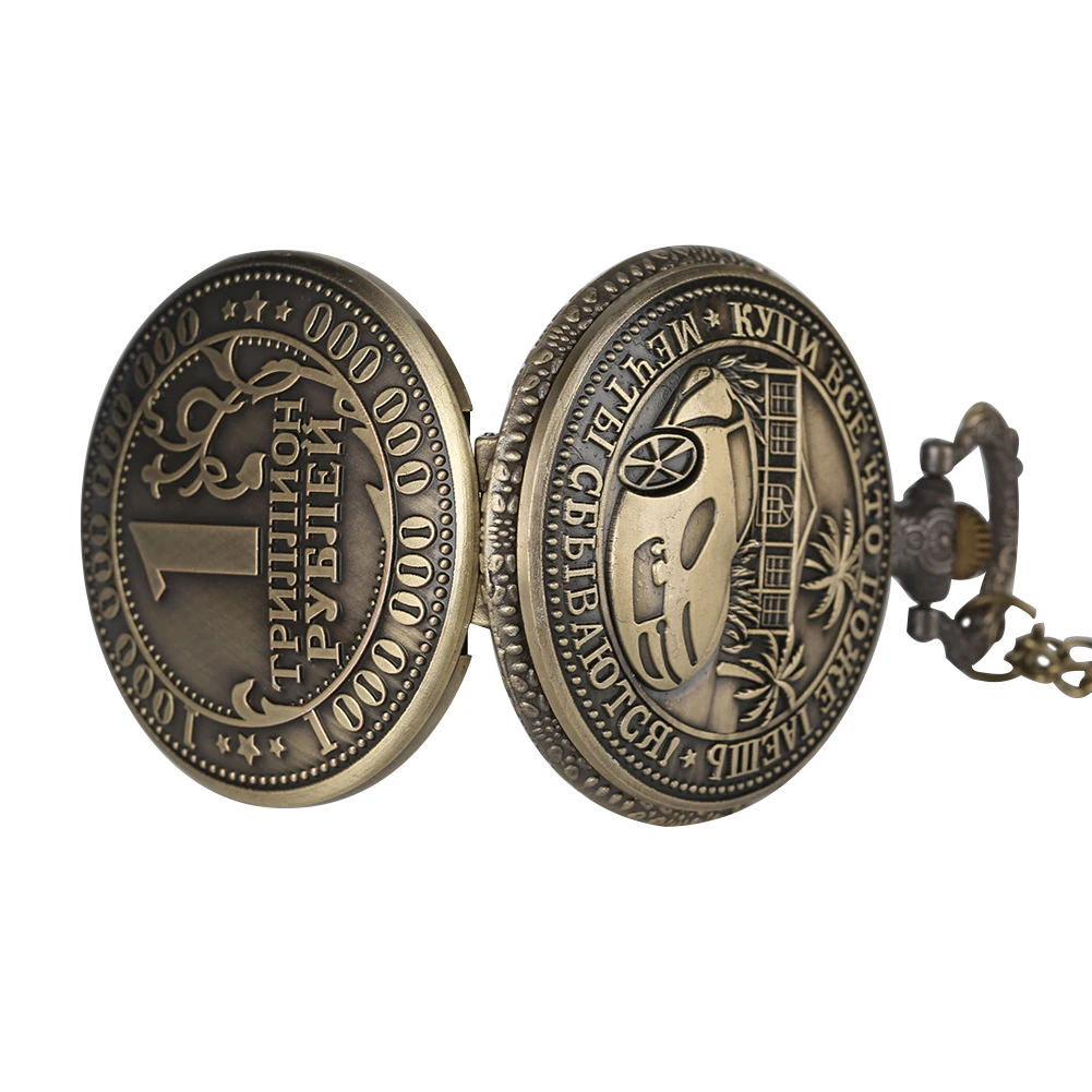 Мужские наручные часы с подвеской, винтажные, бронзовые, кварцевые, аналоговые, арабские цифры, большой циферблат, 1 триллион рублей