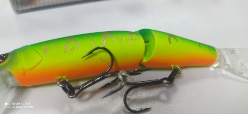 Выглядит очень качественно. В деле ещё не успел опробовать, но заказывал опираясь на положительные отзывы других покупателей, так же видел эти воблеры у знакомых, отзывались о них - отлично! Тройники хорошие, острые, петли нормально залиты, в общем все отлично, доставка не очень долгая, недели 2,5-3. Запасной хвост силиконовый в комплекте, и положили наклейку. Единственное что - нет надписей на самом воблере. Продавца и товар рекомендую, буду заказывать ещё в других цветах.