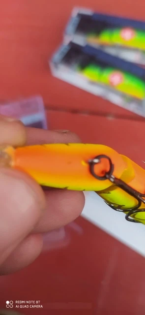 Воблер как всегда супер. Покраска на высоте. петли проклеены. Правда добавил капельки клея, но думаю было бы нормально и без них. Хвостик тоже чуть подклеил для надёжности. Второй запасной хвост в комплекте. крючки и кольца менять не нужно.