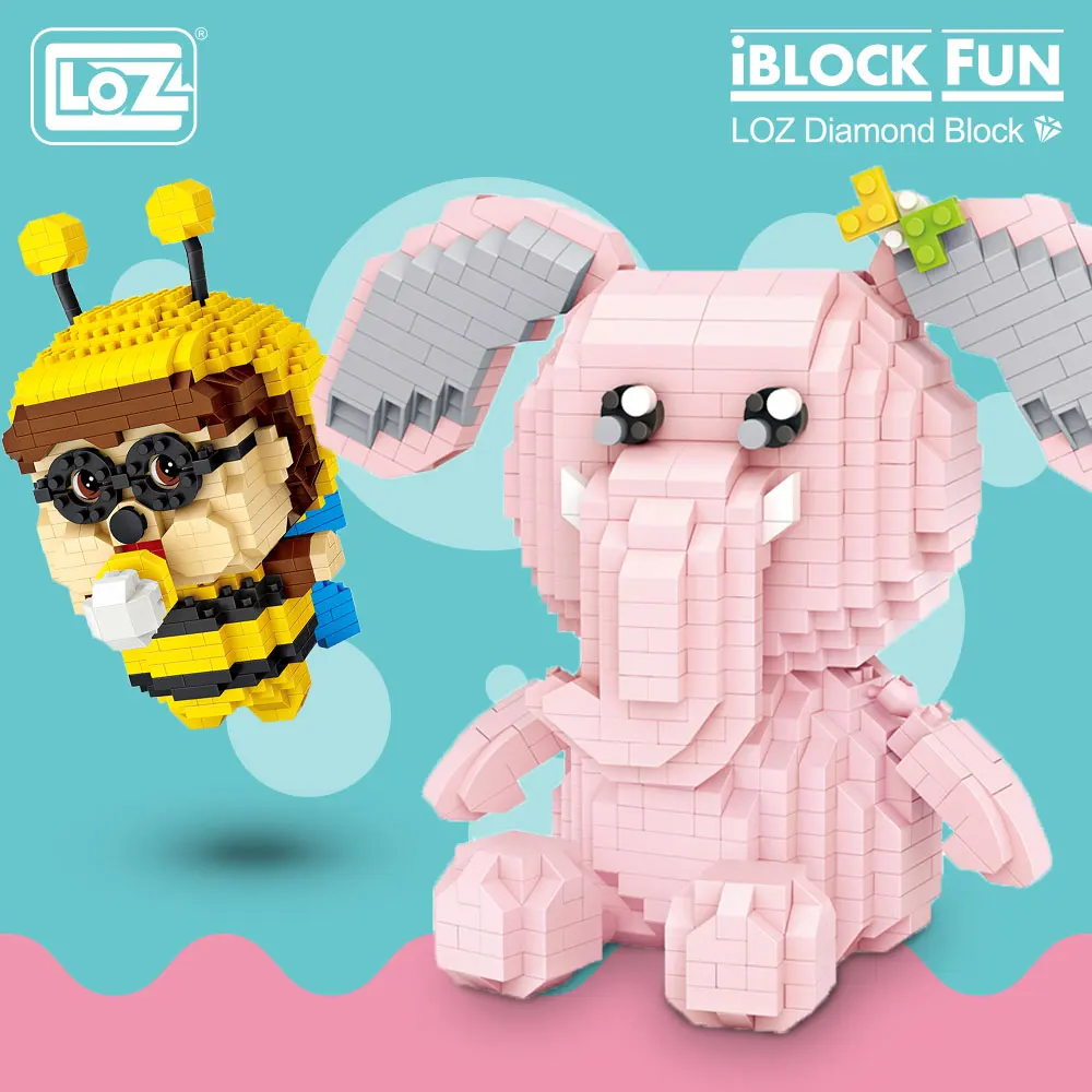 LOZ алмазные блоки Пчела Розовый Слон мультяшная животная модель микро строительные блоки развивающие подарки DIY Кирпичи игрушки для детей