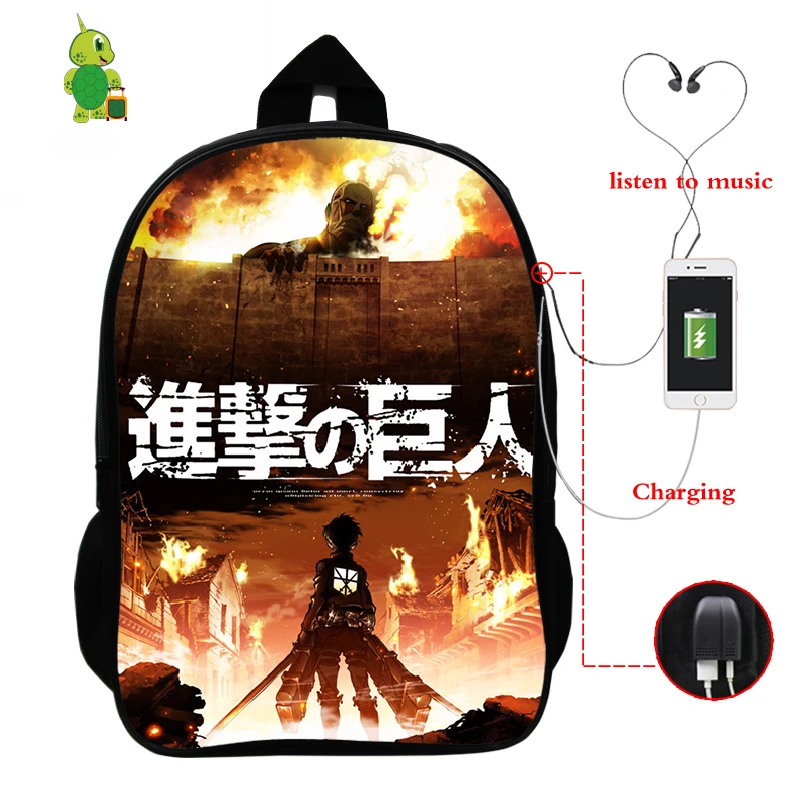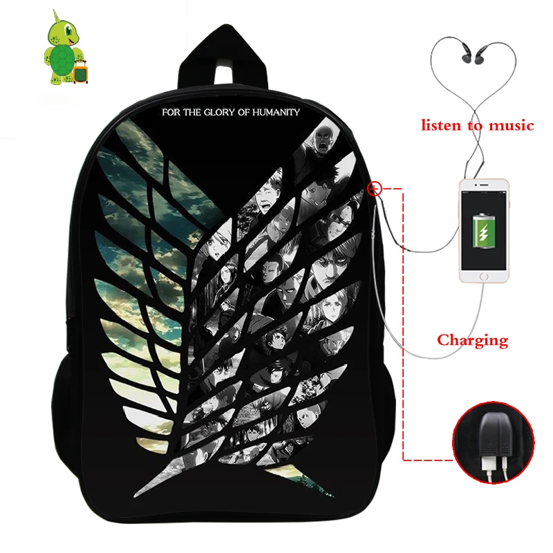 Аниме Рюкзак "атака на Титанов" USB зарядка Рюкзак для ноутбука школьные сумки для мальчиков и девочек-подростков женский рюкзак дорожные сумки через плечо