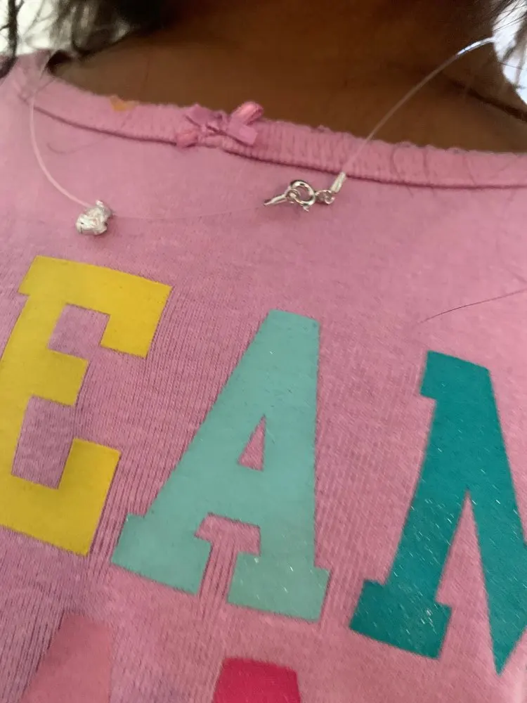 Выглядит действительно детски на самом деле, сомневайтесь, что это настоящее серебро, не лучшее качество, но стоит своей цены (цепочка для ожерелья-это просто прозрачная пластиковая леска, а не серебро).