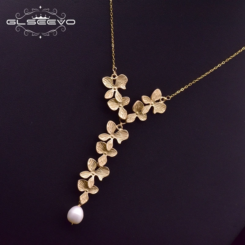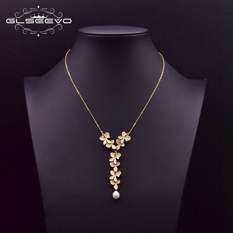 GLSEEVO 925 Стерлинговое ожерелье в виде серебряного листа натуральный пресноводный жемчуг кулон ожерелье для женщин Свадебные ювелирные изделия GN0110